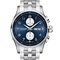 Мужские наручные часы-хронографХронографФункция позволяет измерять отрезки времени с особой точностью: часы, минуты, секунды. Верным признаком хронографа является наличие на циферблате 3 дополнительных окошек-счётчиков. Hamilton Jazzmaster Maestro Auto Chrono H32766143 с автоматическим механизмом. Корпус выполнен из нержавеющей стали. Сапфировое стеклоСапфировое стеклоПрочный и надёжный материал из кристалла сапфира синтетического происхождения, характеризующийся особой твёрдостью и устойчивостью к царапинам и повреждениям. устойчивое к мелким механическим повреждениям. Стальной браслет на застёжке-бабочке с кнопкамиЗастёжка "бабочка"Такой вид застёжки дополняется предохранителями, помогающими избежать случайного раскрытия браслета. Обладают изящным исполнением. . Стрелки и метки с люминесцентным покрытиемЛюминесцентное покрытиеПозволяет считывать показания времени в темноте. Производители наносят на стрелки, часовые индексы, безель или поверхность циферблата светонакопительный состав, дающий холодное свечение.. Окошки дня недели и даты находятся в положении 3 часа. Класс водозащиты: 100 метров, позволит плавать, нырять и заниматься другими водными видами спорта.