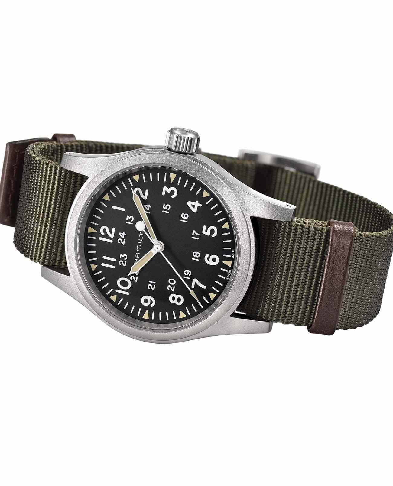 В новой модели Khaki Field Mechanical достоверно воссозданы все особенности выпущенной в 1960-х годах исторической модели, а также отражено славное военное наследие Hamilton. Стиль милитари и абсолютная надежность: настоящие армейские часы. Представлены в фильме «Соник в кино» (2020) на Джеймсе Марсдене в роли Тома Ваковски.