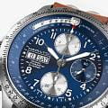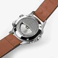 Мужские наручные часы Hamilton Khaki Aviation X-Wind Auto Chrono 44mm H77506540 сочетают в себе спортивный стиль и функциональность для профессионалов авиации. Модель обладает круглым корпусом диаметром 44 мм, изготовленным из нержавеющей стали, что обеспечивает высокую устойчивость к внешним воздействиям. Ремешок выполнен из кожи на стандартной застежке, гарантирующей комфортное ношение и безопасность. Синий циферблат оснащен крупными цифрами и стрелками с люминесцентным покрытиемЛюминесцентное покрытиеПозволяет считывать показания времени в темноте. Производители наносят на стрелки, часовые индексы, безель или поверхность циферблата светонакопительный состав, дающий холодное свечение. Super-LumiNova®, обеспечивающим превосходную видимость в темноте. Для защиты используется сапфировое стеклоСапфировое стеклоПрочный и надёжный материал из кристалла сапфира синтетического происхождения, характеризующийся особой твёрдостью и устойчивостью к царапинам и повреждениям., которое эффективно противостоит царапинам. Часы работают на автоматическом швейцарском механизме H-21, что обеспечивает точное время без необходимости подзаводки. Модель также оснащена функциями даты и дня недели, хронографаХронографФункция позволяет измерять отрезки времени с особой точностью: часы, минуты, секунды. Верным признаком хронографа является наличие на циферблате 3 дополнительных окошек-счётчиков., а также уникальным калькулятором угла сноса, который позволяет пилотам рассчитывать боковой ветер. Водонепроницаемость часов достигает 10 атмосфер (100 метров), что делает их подходящими для повседневного использования и активного отдыха. Это сочетание высокой прочности, точности и изысканного дизайна для уверенных в себе мужчин.