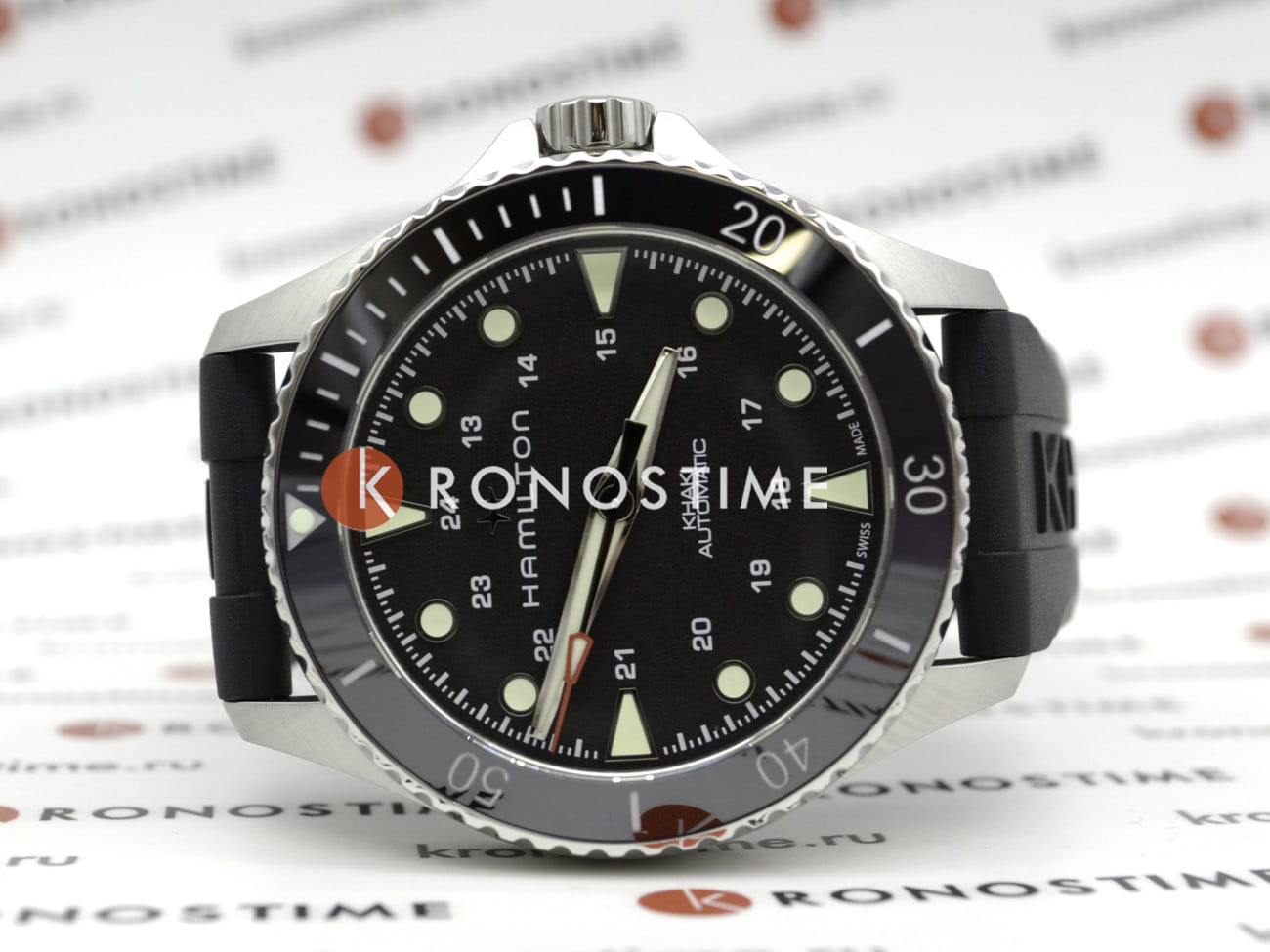 Мужские швейцарские механические часы Hamilton Khaki Navy Scuba Automatic H82515330, автоматический механизм с высокой точностью. Сапфировое стеклоСапфировое стеклоПрочный и надёжный материал из кристалла сапфира синтетического происхождения, характеризующийся особой твёрдостью и устойчивостью к царапинам и повреждениям. устойчивое к появлению царапин, обладающее высокой прозрачностью. Класс водозащиты: 300 метров, позволит плавать, нырять и заниматься другими водными видами спорта. Корпус часов изготовлен из керамики. Стрелки и метки с люминесцентным покрытиемЛюминесцентное покрытиеПозволяет считывать показания времени в темноте. Производители наносят на стрелки, часовые индексы, безель или поверхность циферблата светонакопительный состав, дающий холодное свечение.. Каучуковый ремешок.