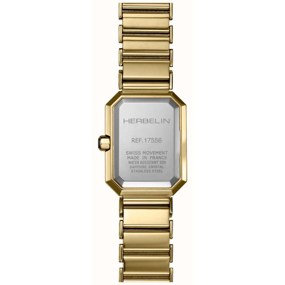 Женские кварцевые часы Herbelin Octogone 17556BP1N49 – отражающий идеальное сочетание современного дизайна, надёжности и функциональности. Элегантный облик станет превосходным завершением образа, наделив его индивидуальным характером. Корпус из нержавеющей стали 316L с PVD-покрытиемPVDУльтратонкое покрытие наносится в технике вакуумного напыления, сочетает в себе нитрид титана особой прочности со слоем золота или оксида хрома. Несёт в себе декоративную или защитную функцию. идеально сбалансирован и элегантен. Сапфировое стеклоСапфировое стеклоПрочный и надёжный материал из кристалла сапфира синтетического происхождения, характеризующийся особой твёрдостью и устойчивостью к царапинам и повреждениям. защищает циферблат от царапин и устойчивое к механическим повреждениям. Изысканный стальной браслет с PVD-покрытиемPVDУльтратонкое покрытие наносится в технике вакуумного напыления, сочетает в себе нитрид титана особой прочности со слоем золота или оксида хрома. Несёт в себе декоративную или защитную функцию. на застёжке-бабочке с кнопкамиЗастёжка "бабочка"Такой вид застёжки дополняется предохранителями, помогающими избежать случайного раскрытия браслета. Обладают изящным исполнением.  обеспечивает комфортное ношение. Водозащита 50 метров, позволит защитить корпус от случайных брызг или капель дождя. Эта модель – отличный выбор для тех, кто ищет сочетание стиля, качества и функциональности. Часы станут не только полезным аксессуаром, но и выразительным элементом вашего имиджа.