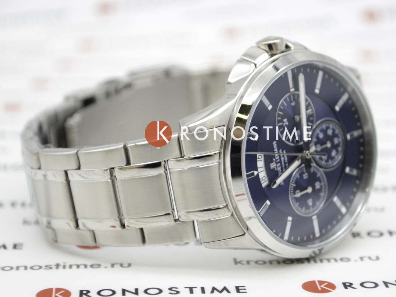 Наручные часы-хронографХронографФункция позволяет измерять отрезки времени с особой точностью: часы, минуты, секунды. Верным признаком хронографа является наличие на циферблате 3 дополнительных окошек-счётчиков. Jacques Lemans с датой, 12/24-часовым форматом времени и секундомеромСекундомерСекундоме́р — прибор, способный измерять интервалы времени с точностью до долей секунды. призваны ставить на первое место индивидуальный стиль владельца, классическая элегантность придётся по вкусу каждому. Брендовые часы привлекают минималистичным дизайном, отсутствие вычурности и обилия декорирующих элементов делают модель лучшим решением для ежедневного применения. Аксессуар можно носить с деловыми костюмами и повседневной одеждой, он органично сочетается как с классическими брюками, так и с рваными джинсами. Это настоящее часовое искусство высокого качества, часы считаются актуальным вариантом на все времена и с идеальной точностью показывают время благодаря надёжному японскому механизму.