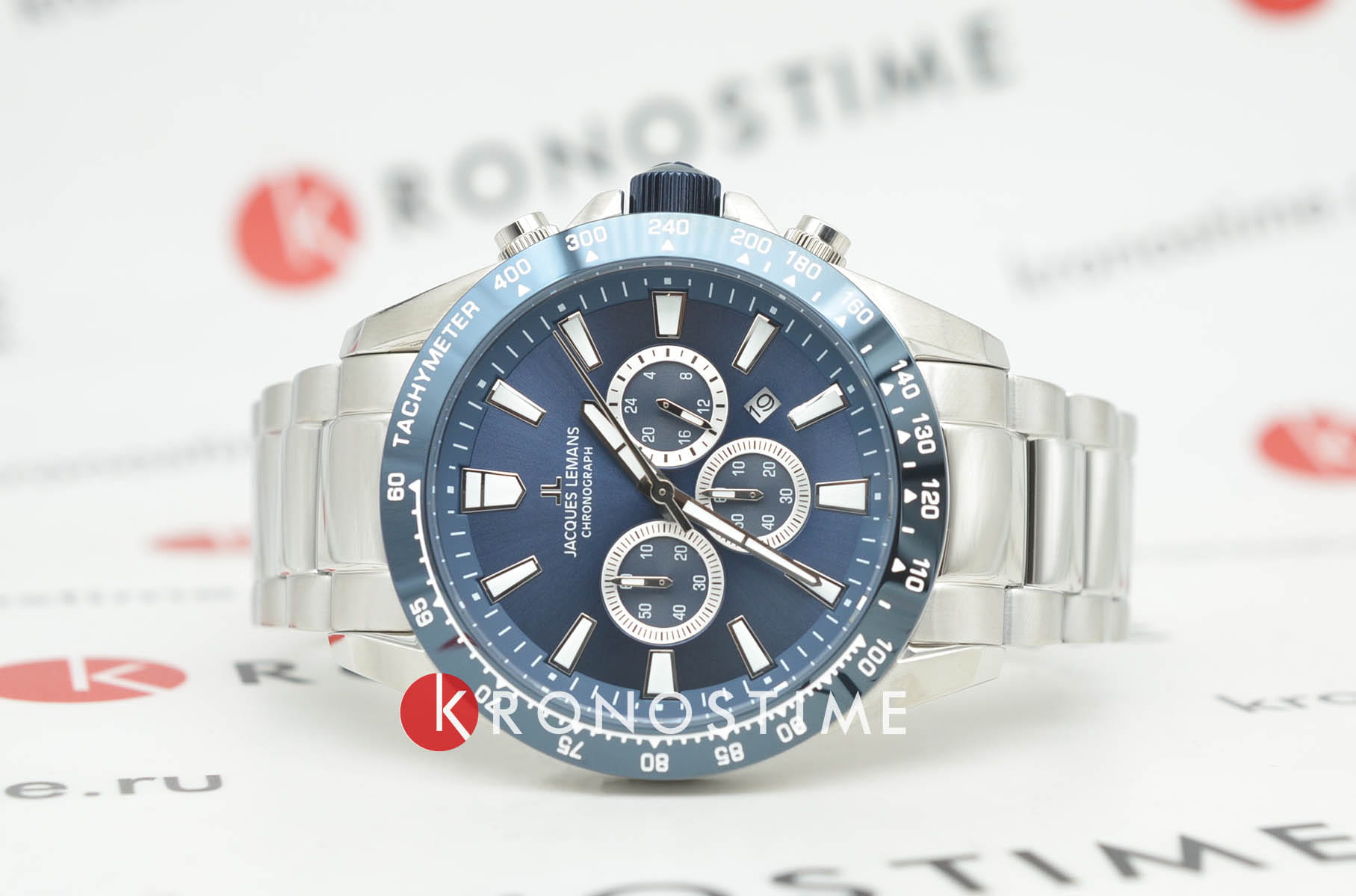 Кварцевый хронографХронографФункция позволяет измерять отрезки времени с особой точностью: часы, минуты, секунды. Верным признаком хронографа является наличие на циферблате 3 дополнительных окошек-счётчиков. в мощном корпусе диаметром 48 мм. Нержавеющая сталь, из которой он сделан, отличается гипоаллергенными свойствами и стойкостью к коррозии. Широкий контрастный безельБезельВнешний ободок, закрепляющий стекло. В спортивных часах так называется поворотное кольцо с делениями на циферблате, выполняет роль таймера – замеряет отрезки времени на шкале. Неподвижный безель – элемент декора. Однонаправленно вращающийся безель на дайверских часах позволяет фиксировать моменты погружения и выныривания на поверхность. с тахиметрической шкалой обрамляет синий циферблат. На нем расположены три дополнительных индикатора и окошко даты. С помощью индикаторов можно засекать временные промежутки (секунды и минуты) и определять время в 24-часовом формате времяисчисления. В модели установлено минеральное стеклоМинеральное стеклоМинеральное стекло представляет собой искусственно выращенный минерал кварца. Такое стекло отличается особой устойчивостью к повреждениям и царапинам. Уступает по некоторым качествам сапфировому стеклу.. Повышенная водостойкость равна 10 атмосфер. Браслет из нержавеющей стали удерживает на запястье раскладная застёжкаРаскладная застёжкаТакой тип застёжки используется только на браслетах из металла. Она никогда не раскрывается полностью, происходит разделение на 2 и более частей. Раскладывающая застёжка снизит вероятность потери часов к минимуму.. Часы Jacques Lemans, надежные и функциональные, хорошо дополнят образ в спортивном или повседневном стиле.