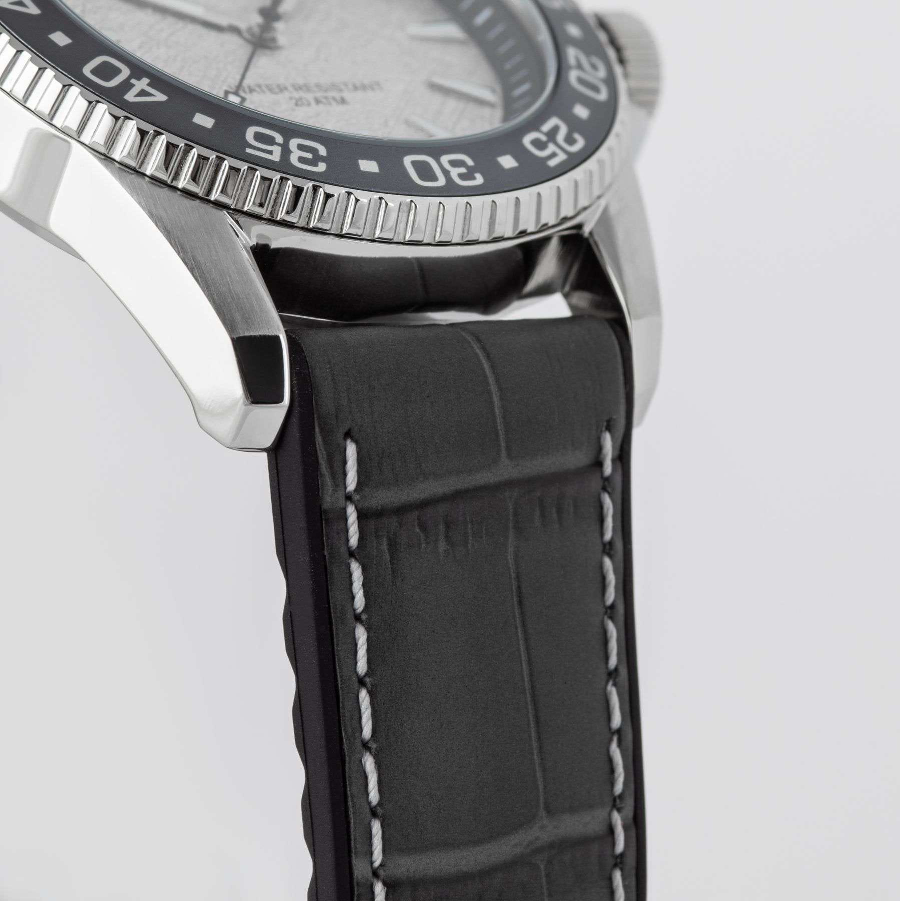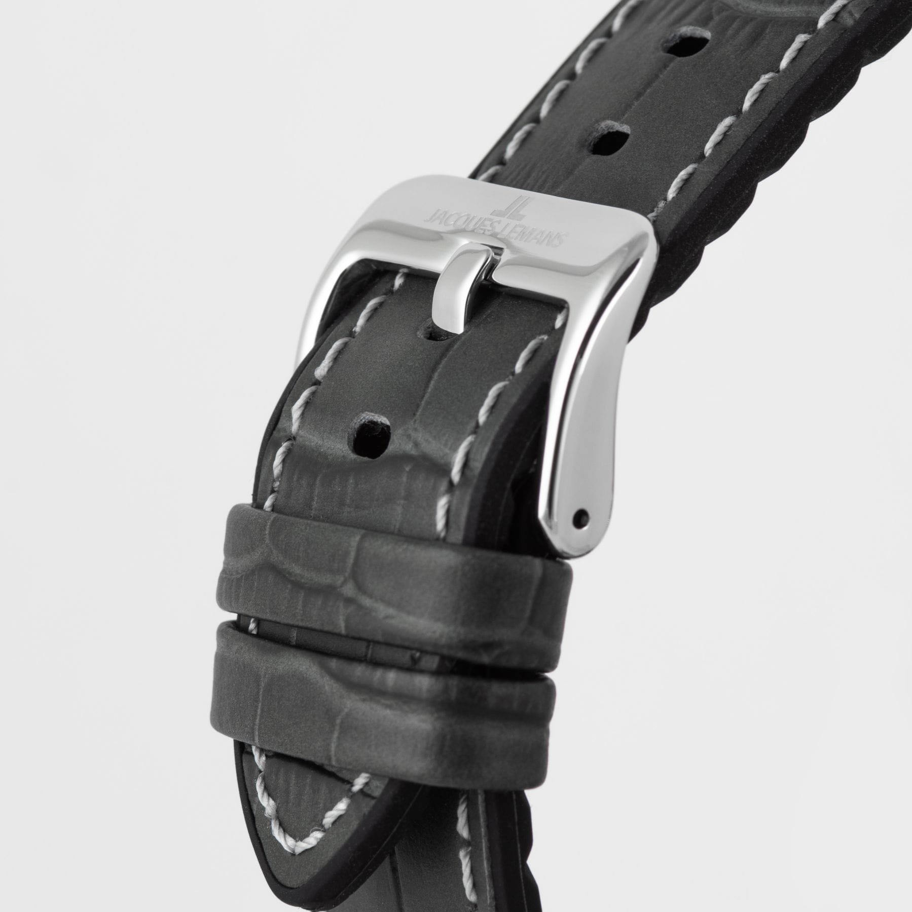 Мужские спортивные часы Jacques Lemans Liverpool Diver 1-2205E представляют собой стильный аксессуар, отражающий идеальное сочетание современного дизайна, надёжности и функциональности. Корпус из нержавеющей стали диаметром 41 мм идеально сбалансирован и элегантен. Ударопрочное минеральное стеклоМинеральное стеклоМинеральное стекло представляет собой искусственно выращенный минерал кварца. Такое стекло отличается особой устойчивостью к повреждениям и царапинам. Уступает по некоторым качествам сапфировому стеклу. Crystex защищает циферблат от царапин. Широкий безельБезельВнешний ободок, закрепляющий стекло. В спортивных часах так называется поворотное кольцо с делениями на циферблате, выполняет роль таймера – замеряет отрезки времени на шкале. Неподвижный безель – элемент декора. Однонаправленно вращающийся безель на дайверских часах позволяет фиксировать моменты погружения и выныривания на поверхность. с PVD-покрытиемPVDУльтратонкое покрытие наносится в технике вакуумного напыления, сочетает в себе нитрид титана особой прочности со слоем золота или оксида хрома. Несёт в себе декоративную или защитную функцию., на который вынесена дополнительная индикация секунд. Ремешок черного цвета состоит из двух частей: внутренняя сделана из силикона, материала, который не боится повышенной влажности, внешняя — из натуральной кожи. Водозащита 200 метров позволит плавать, нырять и заниматься другими водными видами спорта. Стрелки и метки с люминесцентным покрытиемЛюминесцентное покрытиеПозволяет считывать показания времени в темноте. Производители наносят на стрелки, часовые индексы, безель или поверхность циферблата светонакопительный состав, дающий холодное свечение. позволяющие легко определять время даже в темноте. Окошко даты находится в положении 6 часов. Это аксессуар для мужчины, который ценит классический стиль и функциональность.