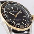 Мужские спортивные часы Jacques Lemans Liverpool Diver 1-2205G представляют собой стильный аксессуар, отражающий идеальное сочетание современного дизайна, надёжности и функциональности. Корпус из нержавеющей стали диаметром 41 мм идеально сбалансирован и элегантен. Ударопрочное минеральное стеклоМинеральное стеклоМинеральное стекло представляет собой искусственно выращенный минерал кварца. Такое стекло отличается особой устойчивостью к повреждениям и царапинам. Уступает по некоторым качествам сапфировому стеклу. Crystex защищает циферблат от царапин. Широкий безельБезельВнешний ободок, закрепляющий стекло. В спортивных часах так называется поворотное кольцо с делениями на циферблате, выполняет роль таймера – замеряет отрезки времени на шкале. Неподвижный безель – элемент декора. Однонаправленно вращающийся безель на дайверских часах позволяет фиксировать моменты погружения и выныривания на поверхность. с PVD-покрытиемPVDУльтратонкое покрытие наносится в технике вакуумного напыления, сочетает в себе нитрид титана особой прочности со слоем золота или оксида хрома. Несёт в себе декоративную или защитную функцию., на который вынесена дополнительная индикация секунд. Ремешок черного цвета состоит из двух частей: внутренняя сделана из силикона, материала, который не боится повышенной влажности, внешняя — из натуральной кожи. Водозащита 200 метров позволит плавать, нырять и заниматься другими водными видами спорта. Стрелки и метки с люминесцентным покрытиемЛюминесцентное покрытиеПозволяет считывать показания времени в темноте. Производители наносят на стрелки, часовые индексы, безель или поверхность циферблата светонакопительный состав, дающий холодное свечение. позволяющие легко определять время даже в темноте. Окошко даты находится в положении 6 часов. Это аксессуар для мужчины, который ценит классический стиль и функциональность.