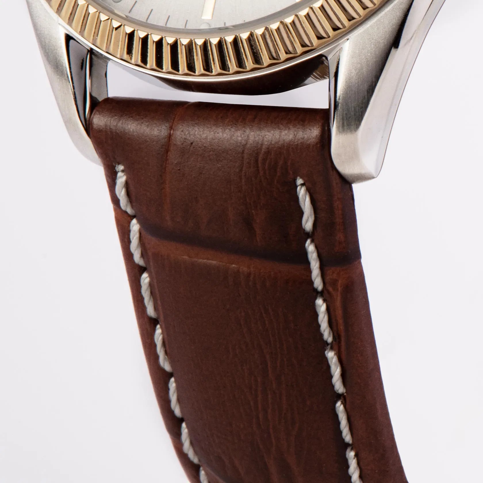 Женские часы Jacques Lemans Derby 50-4V с минеральным стекломМинеральное стеклоМинеральное стекло представляет собой искусственно выращенный минерал кварца. Такое стекло отличается особой устойчивостью к повреждениям и царапинам. Уступает по некоторым качествам сапфировому стеклу., кварцевый механизм с высокой точностью. Корпус часов из нержавеющей стали. Стрелки с люминесцентным покрытиемЛюминесцентное покрытиеПозволяет считывать показания времени в темноте. Производители наносят на стрелки, часовые индексы, безель или поверхность циферблата светонакопительный состав, дающий холодное свечение.. Окошко даты в положении 3 часа. Класс водозащиты: 100 метров, позволит плавать, нырять и заниматься другими водными видами спорта. Кожаный ремешок на стандартной застежке. БезельБезельВнешний ободок, закрепляющий стекло. В спортивных часах так называется поворотное кольцо с делениями на циферблате, выполняет роль таймера – замеряет отрезки времени на шкале. Неподвижный безель – элемент декора. Однонаправленно вращающийся безель на дайверских часах позволяет фиксировать моменты погружения и выныривания на поверхность. с PVD-покрытиемPVDУльтратонкое покрытие наносится в технике вакуумного напыления, сочетает в себе нитрид титана особой прочности со слоем золота или оксида хрома. Несёт в себе декоративную или защитную функцию..