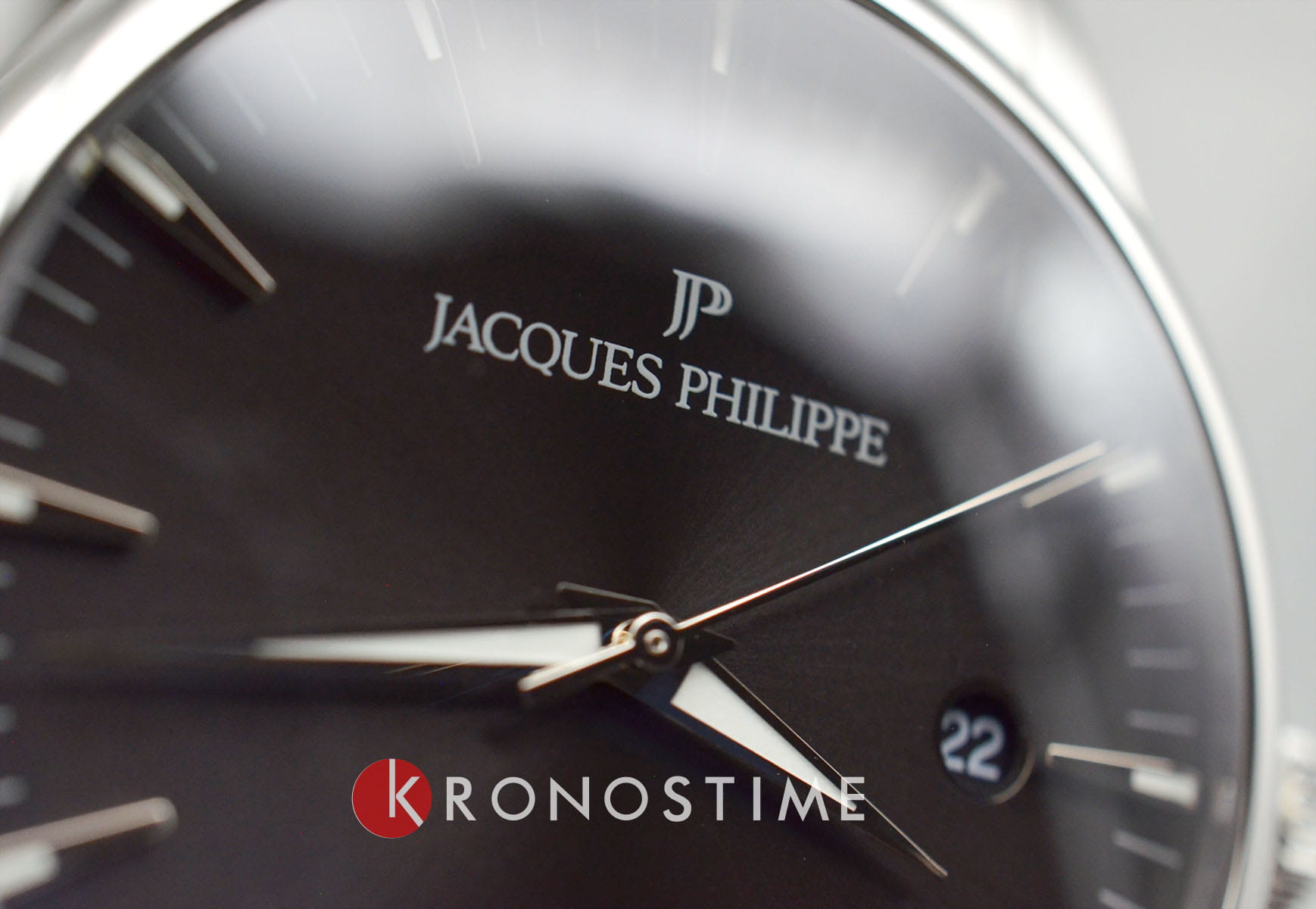 Jacques Philippe JPQGS661316 — стильные мужские часы в классическом формате с акцентом на надёжность и элегантность. Корпус круглой формы диаметром 40 мм из нержавеющей стали отличается утонченным силуэтом при толщине примерно 12 мм, обеспечивая комфорт при длительном ношении . Циферблат чёрного цвета оформлен лаконично: тонкие стрелки и минималистичные часовые метки подчёркивают строгий характер модели. Встроенная функция отображения даты придаёт часы практичность без лишнего визуального нагромождения. Поверхность защищает сапфировое стеклоСапфировое стеклоПрочный и надёжный материал из кристалла сапфира синтетического происхождения, характеризующийся особой твёрдостью и устойчивостью к царапинам и повреждениям. — устойчивое к царапинам и бликам . Внутри используется точный швейцарский кварцевый механизм, не требующий подзавода и сохраняющий стабильную работу без сложного обслуживания . Модель оснащена металлическим браслетом из нержавеющей стали в оттенке металлик‑серый, ширина звеньев около 22 мм, что обеспечивает надёжную посадку и солидный внешний вид . Водозащита составляет до 5 ATM, — часы без проблем выдерживают случайный контакт с водой в повседневной эксплуатации . Jacques Philippe — гармоничное сочетание классического стиля, точного швейцарского кварца и практичности в одном надёжном аксессуаре.