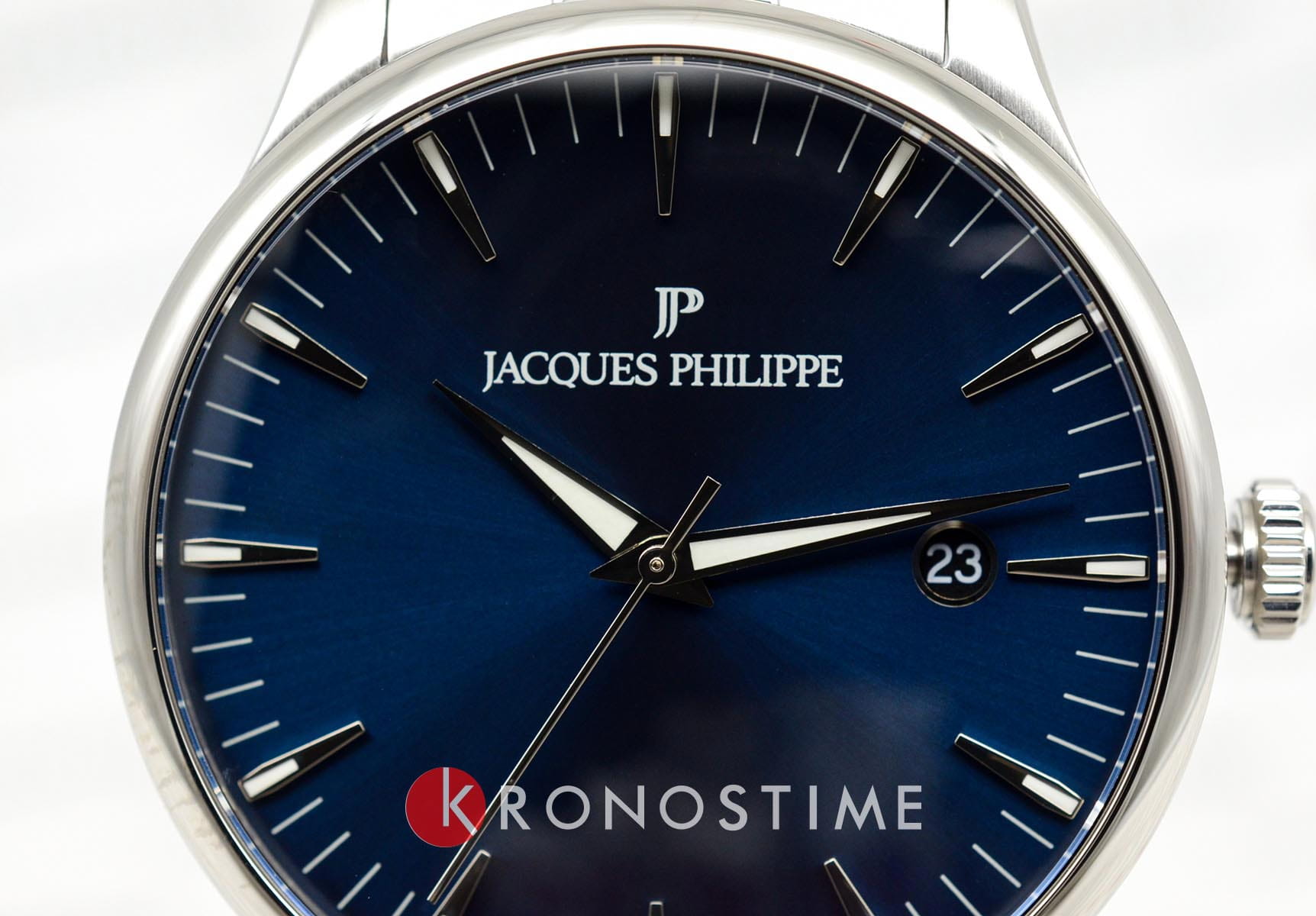 Jacques Philippe JPQGS661336 — стильные мужские часы в классическом формате с акцентом на надёжность и элегантность. Корпус круглой формы диаметром 40 мм из нержавеющей стали отличается утонченным силуэтом при толщине примерно 12 мм, обеспечивая комфорт при длительном ношении . Циферблат оформлен лаконично: тонкие стрелки и минималистичные часовые метки с люминесцентным покрытиемЛюминесцентное покрытиеПозволяет считывать показания времени в темноте. Производители наносят на стрелки, часовые индексы, безель или поверхность циферблата светонакопительный состав, дающий холодное свечение. подчёркивают строгий характер модели. Встроенная функция отображения даты придаёт часам практичность без лишнего визуального нагромождения. Поверхность защищает сапфировое стеклоСапфировое стеклоПрочный и надёжный материал из кристалла сапфира синтетического происхождения, характеризующийся особой твёрдостью и устойчивостью к царапинам и повреждениям. — устойчивое к царапинам и бликам. Внутри используется точный швейцарский кварцевый механизм, не требующий подзавода и сохраняющий стабильную работу без сложного обслуживания. Модель оснащена металлическим браслетом из нержавеющей стали в оттенке металлик‑серый на застёжке-бабочке с кнопкамиЗастёжка "бабочка"Такой вид застёжки дополняется предохранителями, помогающими избежать случайного раскрытия браслета. Обладают изящным исполнением. , ширина звеньев около 22 мм, что обеспечивает надёжную посадку и солидный внешний вид . Водозащита составляет до 5 ATM, — часы без проблем выдерживают случайный контакт с водой в повседневной эксплуатации . Jacques Philippe — гармоничное сочетание классического стиля, точного швейцарского кварца и практичности в одном надёжном аксессуаре.