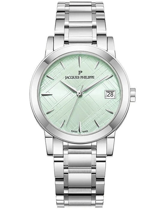 Швейцарские женские часы Jacques Philippe Cosmos JPQLS1613M6, кварцевый механизм с высокой точностью. Сапфировое стеклоСапфировое стеклоПрочный и надёжный материал из кристалла сапфира синтетического происхождения, характеризующийся особой твёрдостью и устойчивостью к царапинам и повреждениям. устойчивое к появлению царапин, обладающее высокой прозрачностью. Корпус и браслет часов изготовлены из нержавеющей стали придающей модели элегантный блеск. Класс водозащиты: 50 метров, позволит защитить корпус от случайных брызг или капель дождя. Стальной браслет на застёжке-бабочке с кнопкамиЗастёжка "бабочка"Такой вид застёжки дополняется предохранителями, помогающими избежать случайного раскрытия браслета. Обладают изящным исполнением. обеспечивает надежную фиксацию на кисти. Окошко даты находится в положении 3 часа.