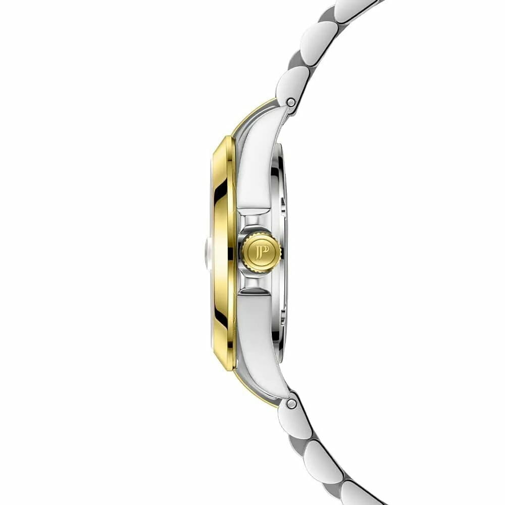 Часы Jacques Philippe JPQLS737388YG из коллекции Infinitum — элегантные женские часы, сочетающие в себе швейцарское качество и современный дизайн. Корпус диаметром 30 мм выполнен из нержавеющей стали, а циферблат защищён сапфировым стекломСапфировое стеклоПрочный и надёжный материал из кристалла сапфира синтетического происхождения, характеризующийся особой твёрдостью и устойчивостью к царапинам и повреждениям.. БезельБезельВнешний ободок, закрепляющий стекло. В спортивных часах так называется поворотное кольцо с делениями на циферблате, выполняет роль таймера – замеряет отрезки времени на шкале. Неподвижный безель – элемент декора. Однонаправленно вращающийся безель на дайверских часах позволяет фиксировать моменты погружения и выныривания на поверхность. с PVD-покрытиемPVDУльтратонкое покрытие наносится в технике вакуумного напыления, сочетает в себе нитрид титана особой прочности со слоем золота или оксида хрома. Несёт в себе декоративную или защитную функцию.. Циферблат инкрустирован кристаллами. Внутри установлен швейцарский кварцевый механизм, обеспечивающий высокую точность хода. Водозащита 100 метров (10 ATM) позволяет использовать часы для плавания и других водных видов спорта. Браслет из нержавеющей стали с PVD-покрытиемPVDУльтратонкое покрытие наносится в технике вакуумного напыления, сочетает в себе нитрид титана особой прочности со слоем золота или оксида хрома. Несёт в себе декоративную или защитную функцию. и застёжкой бабочкаЗастёжка "бабочка"Такой вид застёжки дополняется предохранителями, помогающими избежать случайного раскрытия браслета. Обладают изящным исполнением. обеспечивает комфортное ношение и надёжную фиксацию на запястье. Эти часы идеально подойдут для тех, кто ценит сочетание классического стиля и современных технологий.