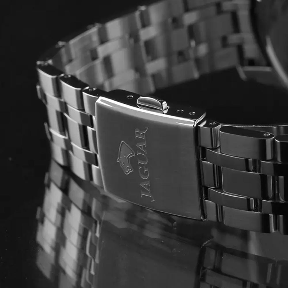 Мужские швейцарские часы Jaguar Acamar J964/2. Кварцевый швейцарский калибр Ronda 6003D. Сапфировое стеклоСапфировое стеклоПрочный и надёжный материал из кристалла сапфира синтетического происхождения, характеризующийся особой твёрдостью и устойчивостью к царапинам и повреждениям. устойчивое к мелким механическим повреждениям. Корпус и браслет часов изготовлены из нержавеющей стали. Окошко даты находится в положении 3 часа. Стрелки с люминесцентным покрытиемЛюминесцентное покрытиеПозволяет считывать показания времени в темноте. Производители наносят на стрелки, часовые индексы, безель или поверхность циферблата светонакопительный состав, дающий холодное свечение.. Класс водозащиты: 100 метров, позволит плавать, нырять и заниматься другими водными видами спорта. Стальной браслет на раскладной застёжкеРаскладная застёжкаТакой тип застёжки используется только на браслетах из металла. Она никогда не раскрывается полностью, происходит разделение на 2 и более частей. Раскладывающая застёжка снизит вероятность потери часов к минимуму..