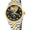 Женские швейцарские часы Jaguar Automatic Open Heart J995/2, механизм — автоподзавод. В часах с автоподзаводом заводная головка практически не используется, что исключает истирание ее материала и материала корпуса. Сапфировое стеклоСапфировое стеклоПрочный и надёжный материал из кристалла сапфира синтетического происхождения, характеризующийся особой твёрдостью и устойчивостью к царапинам и повреждениям. устойчивое к мелким механическим повреждениям. Корпус часов изготовлен из нержавеющей стали. Класс водозащиты: 50 метров, позволит защитить корпус от случайных брызг или капель дождя. Стальной браслет с частичным  PVD-покрытиемPVDУльтратонкое покрытие наносится в технике вакуумного напыления, сочетает в себе нитрид титана особой прочности со слоем золота или оксида хрома. Несёт в себе декоративную или защитную функцию. на застёжке-бабочке с кнопкамиЗастёжка "бабочка"Такой вид застёжки дополняется предохранителями, помогающими избежать случайного раскрытия браслета. Обладают изящным исполнением. . Циферблат украшен кристаллами в роли часовых индексов, крупная апертура в виде сердца, открывающая обзор на балансовое колесо механизма. БезельБезельВнешний ободок, закрепляющий стекло. В спортивных часах так называется поворотное кольцо с делениями на циферблате, выполняет роль таймера – замеряет отрезки времени на шкале. Неподвижный безель – элемент декора. Однонаправленно вращающийся безель на дайверских часах позволяет фиксировать моменты погружения и выныривания на поверхность. с PVD-покрытиемPVDУльтратонкое покрытие наносится в технике вакуумного напыления, сочетает в себе нитрид титана особой прочности со слоем золота или оксида хрома. Несёт в себе декоративную или защитную функцию..