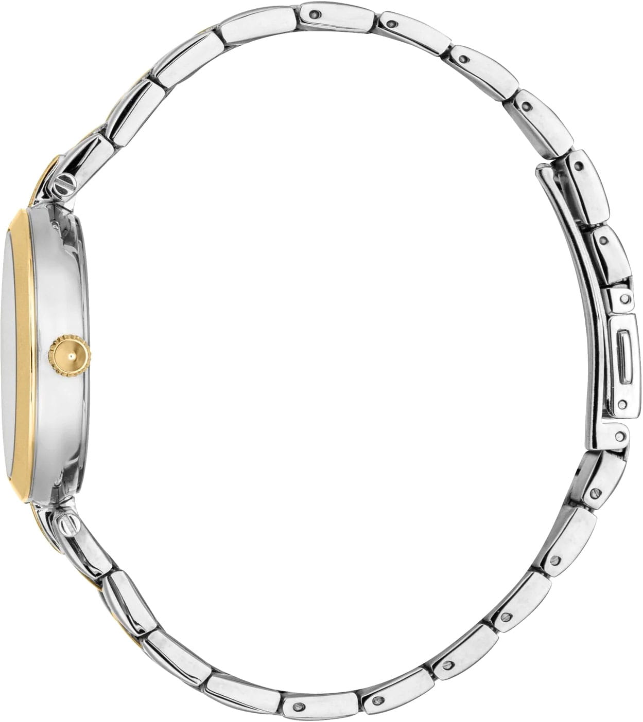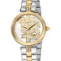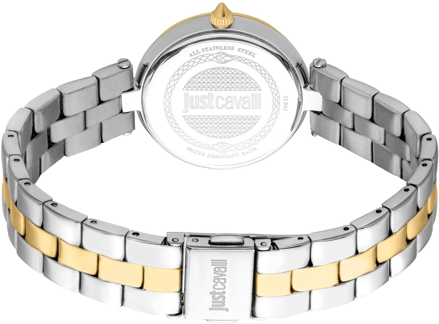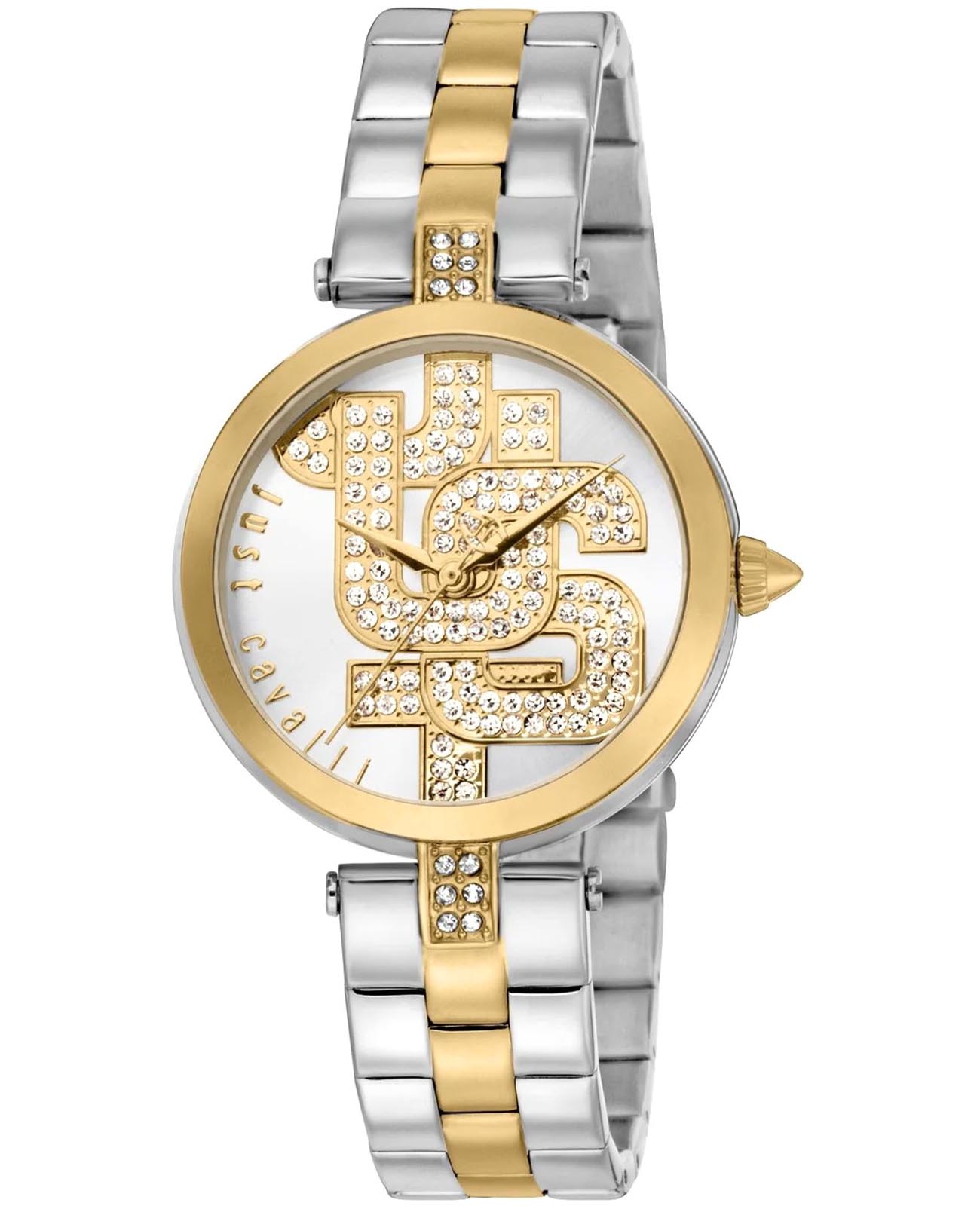 Элегантные женские часы Just Cavalli JC1L241M0085 с минеральным стекломМинеральное стеклоМинеральное стекло представляет собой искусственно выращенный минерал кварца. Такое стекло отличается особой устойчивостью к повреждениям и царапинам. Уступает по некоторым качествам сапфировому стеклу., кварцевый механизм с высокой точностью. БезельБезельВнешний ободок, закрепляющий стекло. В спортивных часах так называется поворотное кольцо с делениями на циферблате, выполняет роль таймера – замеряет отрезки времени на шкале. Неподвижный безель – элемент декора. Однонаправленно вращающийся безель на дайверских часах позволяет фиксировать моменты погружения и выныривания на поверхность. с PVD-покрытиемPVDУльтратонкое покрытие наносится в технике вакуумного напыления, сочетает в себе нитрид титана особой прочности со слоем золота или оксида хрома. Несёт в себе декоративную или защитную функцию. и циферблат украшен кристаллами. Браслет часов изготовлен из стали с частичным  PVD-покрытиемPVDУльтратонкое покрытие наносится в технике вакуумного напыления, сочетает в себе нитрид титана особой прочности со слоем золота или оксида хрома. Несёт в себе декоративную или защитную функцию.. Корпус часов изготовлен из стали. Класс водозащиты: 50 метров, позволит защитить корпус от случайных брызг или капель дождя.