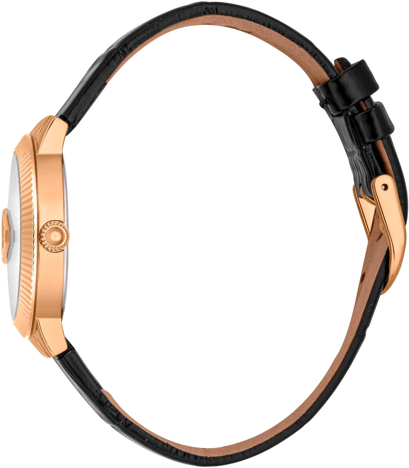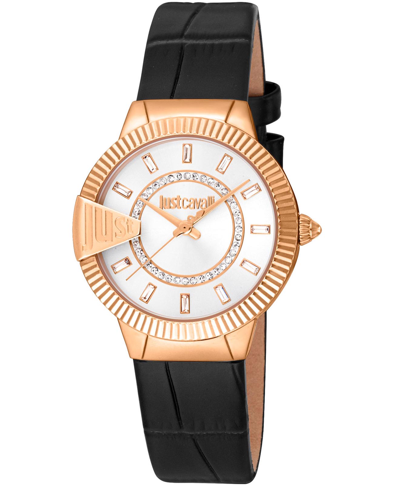 Элегантные женские часы Just Cavalli JC1L256L0035 с минеральным стекломМинеральное стеклоМинеральное стекло представляет собой искусственно выращенный минерал кварца. Такое стекло отличается особой устойчивостью к повреждениям и царапинам. Уступает по некоторым качествам сапфировому стеклу., кварцевый механизм с высокой точностью. Циферблат украшен кристаллами. Корпус часов изготовлен из стали с PVD-покрытиемPVDУльтратонкое покрытие наносится в технике вакуумного напыления, сочетает в себе нитрид титана особой прочности со слоем золота или оксида хрома. Несёт в себе декоративную или защитную функцию.. Класс водозащиты: 50 метров, позволит защитить корпус от случайных брызг или капель дождя. Кожаный ремешок на стандартной застёжке.