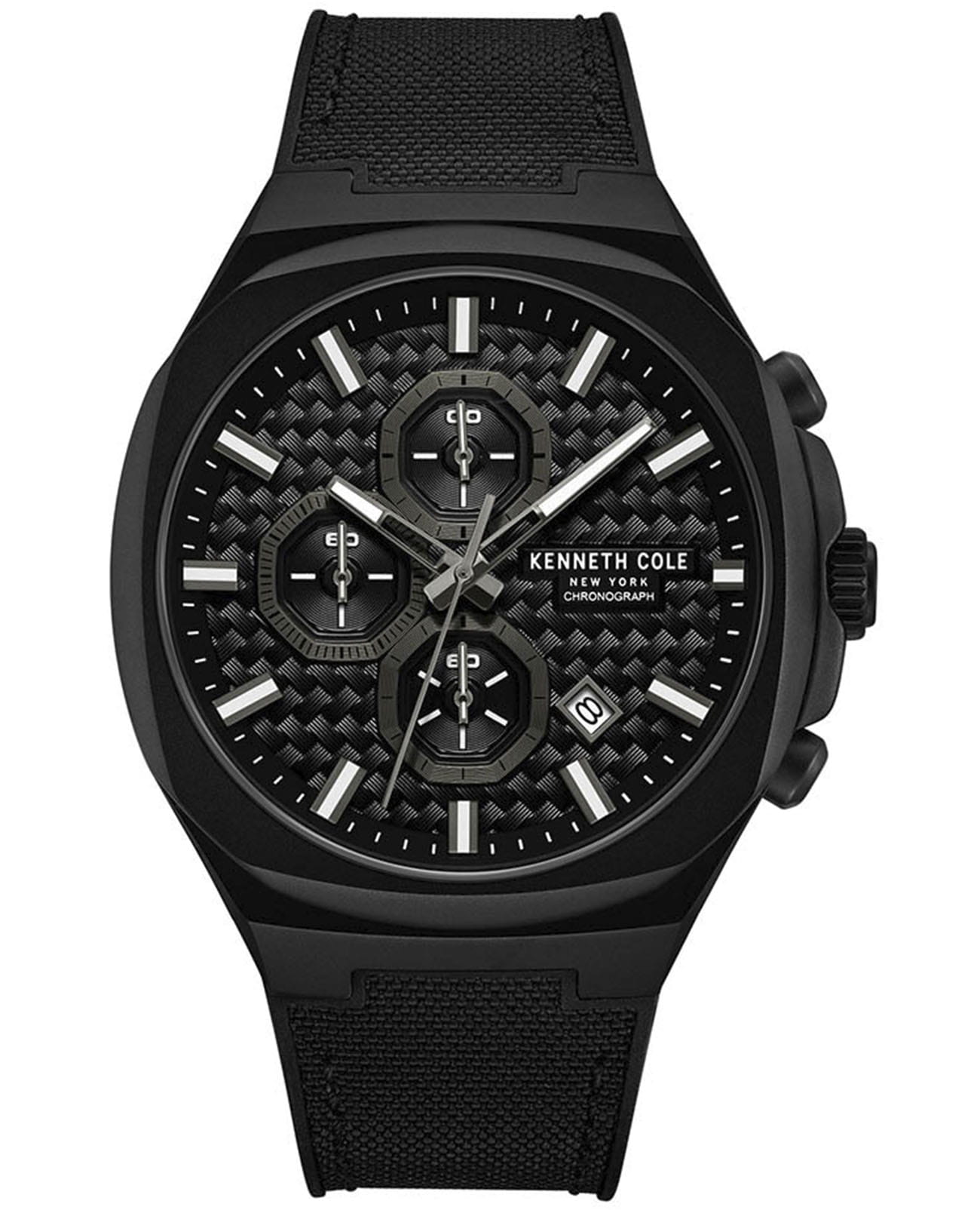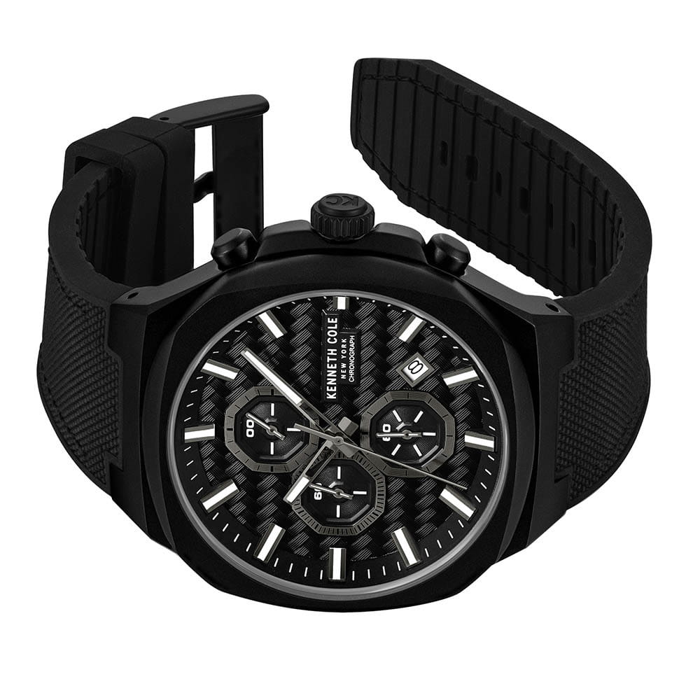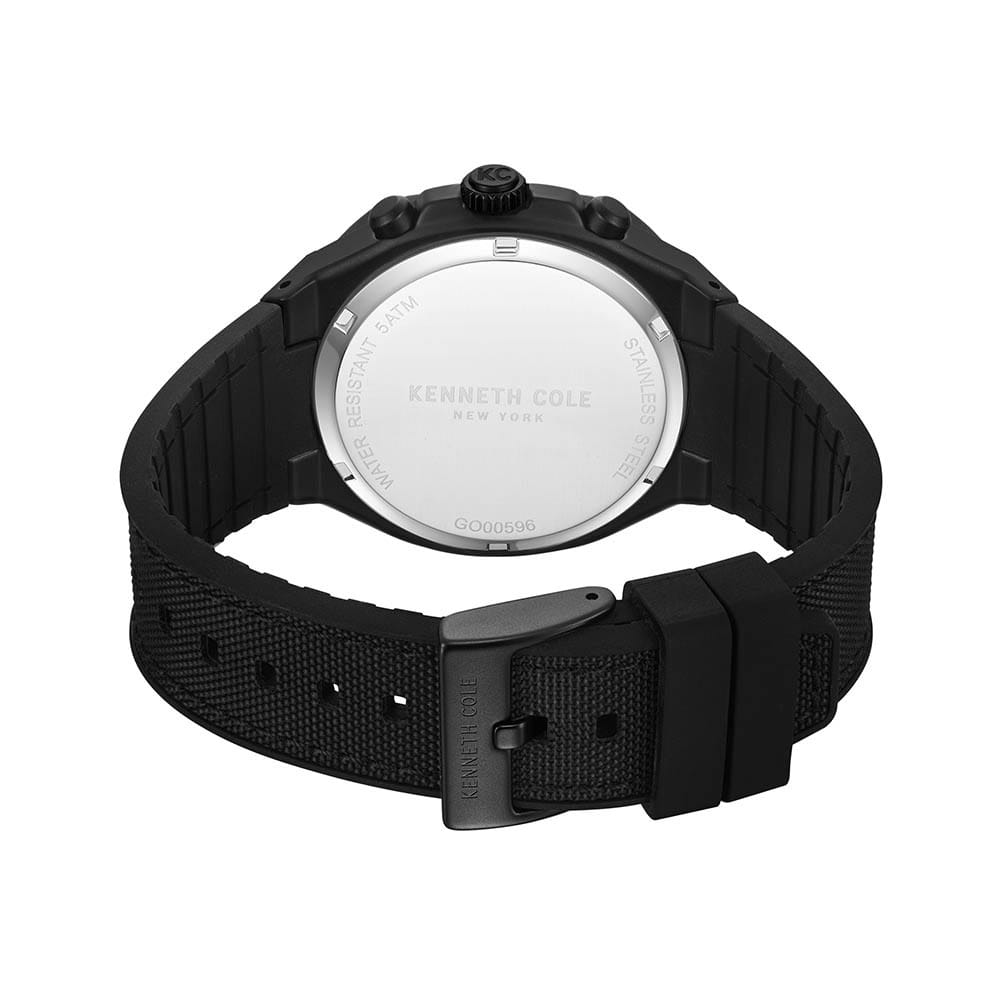 Мужские кварцевые часы Kenneth Cole KCWGO0059603 — это стильный и функциональный аксессуар с современным дизайном. Корпус размером 43 мм выполнен из нержавеющей стали с IP-покрытиемIP-покрытиеМетод ионного напыления. Демонстрирует повышенную устойчивость к истиранию, окислению и химическим веществам. Под воздействием высокого давления и температуры около 1500°C молекулы металла надёжно соединяются с частицами корпуса часов. чёрного цвета, придающим модели спортивный характер. Циферблат чёрного цвета оформлен метками в виде штрихов и дополнен функциями хронографаХронографФункция позволяет измерять отрезки времени с особой точностью: часы, минуты, секунды. Верным признаком хронографа является наличие на циферблате 3 дополнительных окошек-счётчиков. и индикации даты. Стрелки и метки оснащены люминесцентным покрытиемЛюминесцентное покрытиеПозволяет считывать показания времени в темноте. Производители наносят на стрелки, часовые индексы, безель или поверхность циферблата светонакопительный состав, дающий холодное свечение., обеспечивающим хорошую читаемость в темноте. Циферблат защищён минеральным стекломМинеральное стеклоМинеральное стекло представляет собой искусственно выращенный минерал кварца. Такое стекло отличается особой устойчивостью к повреждениям и царапинам. Уступает по некоторым качествам сапфировому стеклу.. Часы оснащены комбинированным ремешком из силикона и нейлона чёрного цвета с классической пряжкой. Водонепроницаемость 50 м позволяет использовать часы для плавания и повседневного ношения. Надёжный выбор для тех, кто ценит выносливость, стиль и функциональность.