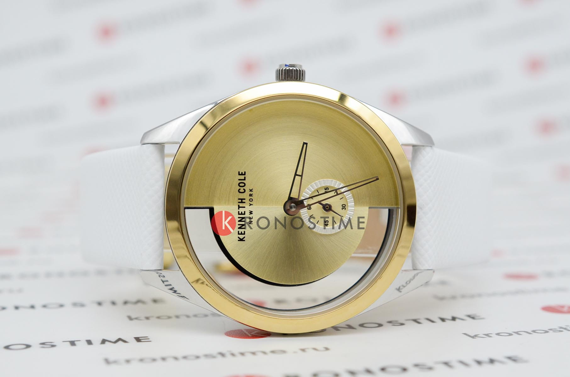 Женские кварцевые часы Kenneth Cole KCWLA2223108 — это стильный и необычный аксессуар с современным дизайном. Корпус диаметром 36 мм выполнен из нержавеющей стали. Безель с IP-покрытиемIP-покрытиеМетод ионного напыления. Демонстрирует повышенную устойчивость к истиранию, окислению и химическим веществам. Под воздействием высокого давления и температуры около 1500°C молекулы металла надёжно соединяются с частицами корпуса часов.. Циферблат золотистого цвета дополнен малой секундной стрелкой, что придаёт классическому дизайну изысканности. Циферблат защищён минеральным стекломМинеральное стеклоМинеральное стекло представляет собой искусственно выращенный минерал кварца. Такое стекло отличается особой устойчивостью к повреждениям и царапинам. Уступает по некоторым качествам сапфировому стеклу.. Особенностью модели является прозрачный корпус, добавляющий оригинальности и визуальной лёгкости. Часы оснащены ремешком из натуральной кожи белого цвета с классической пряжкой. Водонепроницаемость 30 м позволяет использовать часы в повседневных условиях, защищая от случайных брызг и капель дождя. Уникальный внешний вид и внимание к деталям делают эти часы идеальным выбором для тех, кто ценит индивидуальность.