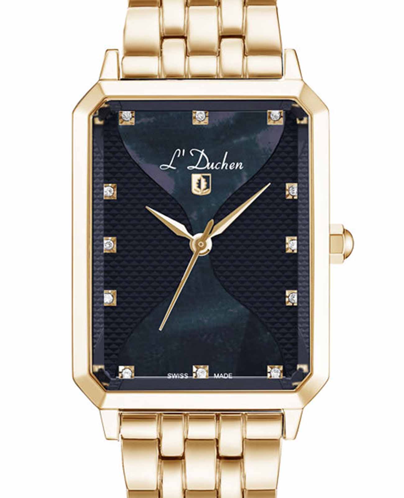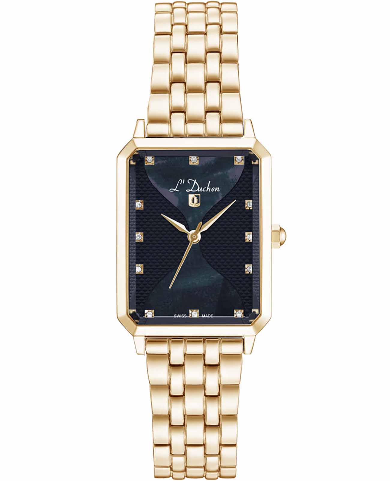 Женские швейцарские L'Duchen Pyramide D 591.20.31, кварцевый механизм с высокой точностью. Сапфировое стеклоСапфировое стеклоПрочный и надёжный материал из кристалла сапфира синтетического происхождения, характеризующийся особой твёрдостью и устойчивостью к царапинам и повреждениям. устойчивое к появлению царапин, обладающее высокой прозрачностью. Корпус часов выполнен из нержавеющей стали с PVD-покрытиемPVDУльтратонкое покрытие наносится в технике вакуумного напыления, сочетает в себе нитрид титана особой прочности со слоем золота или оксида хрома. Несёт в себе декоративную или защитную функцию.. Циферблат украшен фианитами. Класс водозащиты: 50 метров, позволит защитить корпус от случайных брызг или капель дождя. Стальной браслет с PVD-покрытиемPVDУльтратонкое покрытие наносится в технике вакуумного напыления, сочетает в себе нитрид титана особой прочности со слоем золота или оксида хрома. Несёт в себе декоративную или защитную функцию. на застёжке-бабочке с кнопкамиЗастёжка "бабочка"Такой вид застёжки дополняется предохранителями, помогающими избежать случайного раскрытия браслета. Обладают изящным исполнением. .