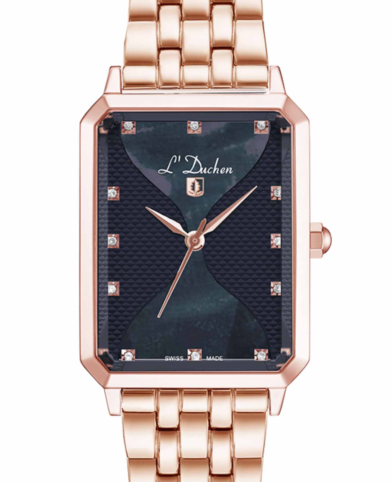 Женские швейцарские L'Duchen Pyramide D 591.40.31, кварцевый механизм с высокой точностью. Сапфировое стеклоСапфировое стеклоПрочный и надёжный материал из кристалла сапфира синтетического происхождения, характеризующийся особой твёрдостью и устойчивостью к царапинам и повреждениям. устойчивое к появлению царапин, обладающее высокой прозрачностью. Корпус часов выполнен из нержавеющей стали с PVD-покрытиемPVDУльтратонкое покрытие наносится в технике вакуумного напыления, сочетает в себе нитрид титана особой прочности со слоем золота или оксида хрома. Несёт в себе декоративную или защитную функцию.. Циферблат украшен фианитами. Класс водозащиты: 50 метров, позволит защитить корпус от случайных брызг или капель дождя. Стальной браслет с PVD-покрытиемPVDУльтратонкое покрытие наносится в технике вакуумного напыления, сочетает в себе нитрид титана особой прочности со слоем золота или оксида хрома. Несёт в себе декоративную или защитную функцию. на застёжке-бабочке с кнопкамиЗастёжка "бабочка"Такой вид застёжки дополняется предохранителями, помогающими избежать случайного раскрытия браслета. Обладают изящным исполнением. .