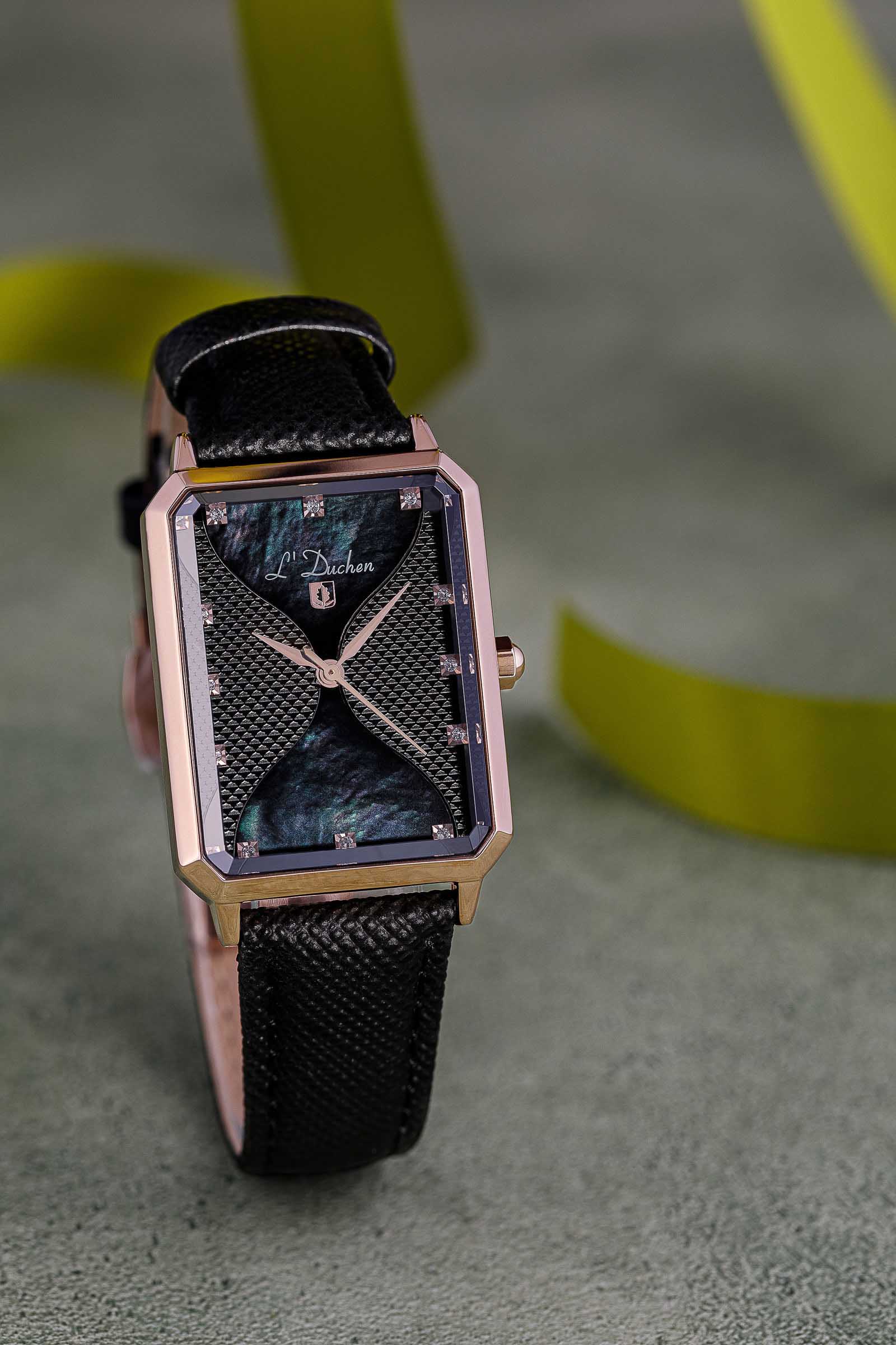 Женские швейцарские L'Duchen Pyramide D 591.41.31, кварцевый механизм с высокой точностью. Сапфировое стеклоСапфировое стеклоПрочный и надёжный материал из кристалла сапфира синтетического происхождения, характеризующийся особой твёрдостью и устойчивостью к царапинам и повреждениям. устойчивое к появлению царапин, обладающее высокой прозрачностью. Корпус часов выполнен из нержавеющей стали с PVD-покрытиемPVDУльтратонкое покрытие наносится в технике вакуумного напыления, сочетает в себе нитрид титана особой прочности со слоем золота или оксида хрома. Несёт в себе декоративную или защитную функцию.. Циферблат украшен фианитами. Класс водозащиты: 50 метров, позволит защитить корпус от случайных брызг или капель дождя. Кожаный ремешок.