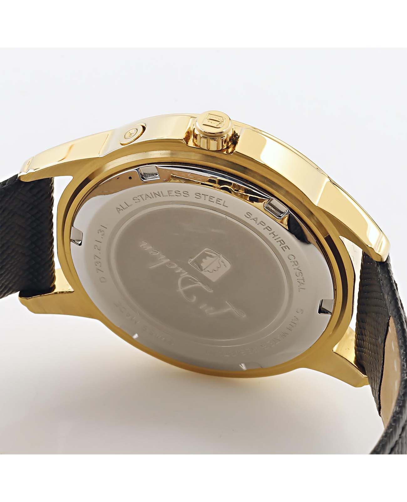 Женские швейцарские механические часы с автоподзаводом L'Duchen Coquille D 737.21.31. Сапфировое стеклоСапфировое стеклоПрочный и надёжный материал из кристалла сапфира синтетического происхождения, характеризующийся особой твёрдостью и устойчивостью к царапинам и повреждениям. устойчивое к появлению царапин, обладающее высокой прозрачностью. Корпус часов выполнен из нержавеющей стали с PVD-покрытиемPVDУльтратонкое покрытие наносится в технике вакуумного напыления, сочетает в себе нитрид титана особой прочности со слоем золота или оксида хрома. Несёт в себе декоративную или защитную функцию.. БезельБезельВнешний ободок, закрепляющий стекло. В спортивных часах так называется поворотное кольцо с делениями на циферблате, выполняет роль таймера – замеряет отрезки времени на шкале. Неподвижный безель – элемент декора. Однонаправленно вращающийся безель на дайверских часах позволяет фиксировать моменты погружения и выныривания на поверхность. украшен фианитами. Класс водозащиты: 50 метров, позволит защитить корпус от случайных брызг или капель дождя. Кожаный ремешок на застёжке «бабочка» с кнопкамиЗастёжка "бабочка"Такой вид застёжки дополняется предохранителями, помогающими избежать случайного раскрытия браслета. Обладают изящным исполнением. .