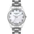 Женские наручные часы Lee CooperLC07478.320 — это элегантная модель с утончённым дизайном. Корпус диаметром 34 мм выполнен из суперметалла, что придаёт часам изысканный вид. Перламутровый циферблат украшен изящными стрелками и вставками из циркония в виде меток, обеспечивая удобное считывание времени. Циферблат защищён минеральным стекломМинеральное стеклоМинеральное стекло представляет собой искусственно выращенный минерал кварца. Такое стекло отличается особой устойчивостью к повреждениям и царапинам. Уступает по некоторым качествам сапфировому стеклу., устойчивым к царапинам. Часы работают на кварцевом механизме, обеспечивая точность хода. Браслет из нержавеющей стали с раскладной застёжкойРаскладная застёжкаТакой тип застёжки используется только на браслетах из металла. Она никогда не раскрывается полностью, происходит разделение на 2 и более частей. Раскладывающая застёжка снизит вероятность потери часов к минимуму. гарантирует комфортное ношение и надёжную фиксацию на запястье. Водозащита 30 метров защищает часы от случайных брызг и дождя, делая их подходящими для повседневного использования. БезельБезельВнешний ободок, закрепляющий стекло. В спортивных часах так называется поворотное кольцо с делениями на циферблате, выполняет роль таймера – замеряет отрезки времени на шкале. Неподвижный безель – элемент декора. Однонаправленно вращающийся безель на дайверских часах позволяет фиксировать моменты погружения и выныривания на поверхность. инкрустирован кристаллами. Стрелки покрыты люминесцентным покрытиемЛюминесцентное покрытиеПозволяет считывать показания времени в темноте. Производители наносят на стрелки, часовые индексы, безель или поверхность циферблата светонакопительный состав, дающий холодное свечение., обеспечивая удобное считывание показаний в условиях недостаточного освещения.
