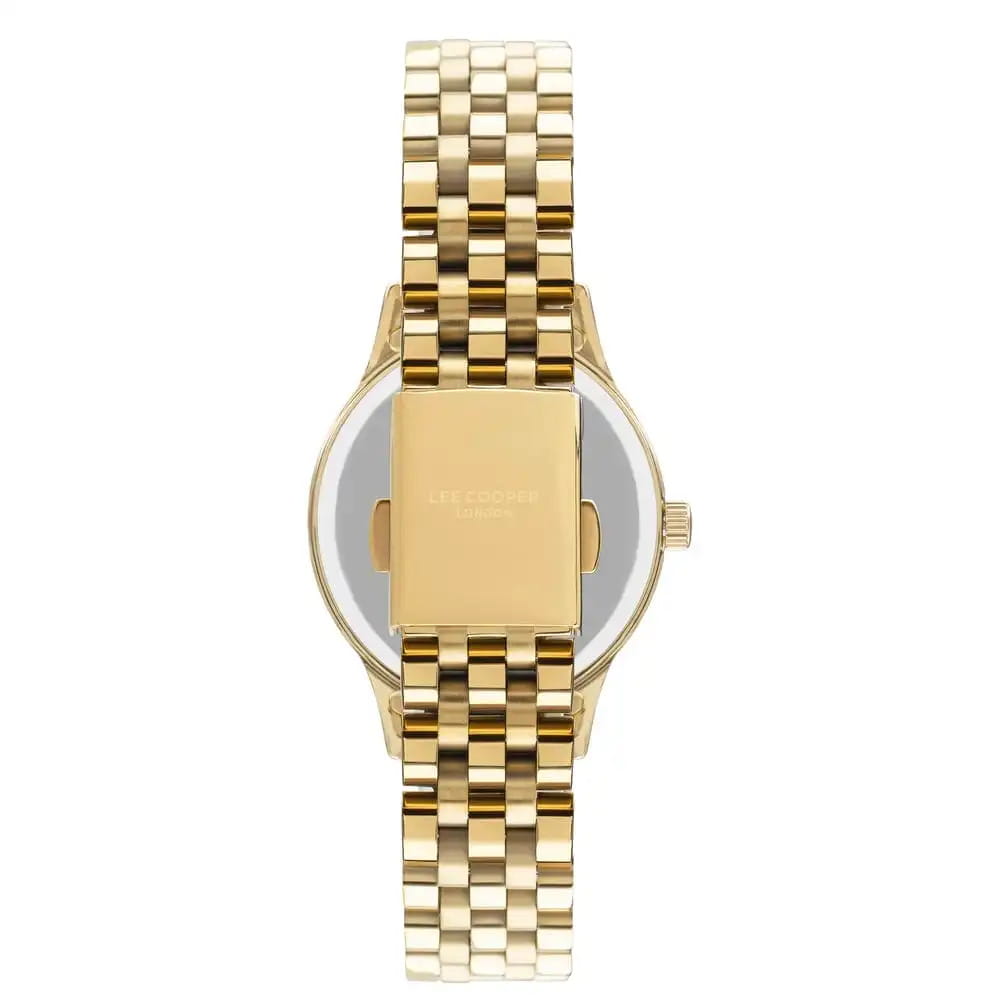 Женские наручные часы Lee Cooper LC07483.120 — это элегантная модель с утончённым дизайном. Корпус диаметром 35 мм выполнен из суперметалла с IP-покрытиемIP-покрытиеМетод ионного напыления. Демонстрирует повышенную устойчивость к истиранию, окислению и химическим веществам. Под воздействием высокого давления и температуры около 1500°C молекулы металла надёжно соединяются с частицами корпуса часов., что придаёт часам изысканный вид. Серебристый циферблат украшен изящными стрелками и вставками из циркония в виде меток, обеспечивая удобное считывание времени. Циферблат защищён минеральным стекломМинеральное стеклоМинеральное стекло представляет собой искусственно выращенный минерал кварца. Такое стекло отличается особой устойчивостью к повреждениям и царапинам. Уступает по некоторым качествам сапфировому стеклу., устойчивым к царапинам. Часы работают на кварцевом механизме, обеспечивая точность хода. Браслет из нержавеющей стали с раскладной застёжкойРаскладная застёжкаТакой тип застёжки используется только на браслетах из металла. Она никогда не раскрывается полностью, происходит разделение на 2 и более частей. Раскладывающая застёжка снизит вероятность потери часов к минимуму. гарантирует комфортное ношение и надёжную фиксацию на запястье. Водозащита 30 метров защищает часы от случайных брызг и дождя, делая их подходящими для повседневного использования. БезельБезельВнешний ободок, закрепляющий стекло. В спортивных часах так называется поворотное кольцо с делениями на циферблате, выполняет роль таймера – замеряет отрезки времени на шкале. Неподвижный безель – элемент декора. Однонаправленно вращающийся безель на дайверских часах позволяет фиксировать моменты погружения и выныривания на поверхность. инкрустирован кристаллами. Стрелки покрыты люминесцентным покрытиемЛюминесцентное покрытиеПозволяет считывать показания времени в темноте. Производители наносят на стрелки, часовые индексы, безель или поверхность циферблата светонакопительный состав, дающий холодное свечение., обеспечивая удобное считывание показаний в условиях недостаточного освещения.