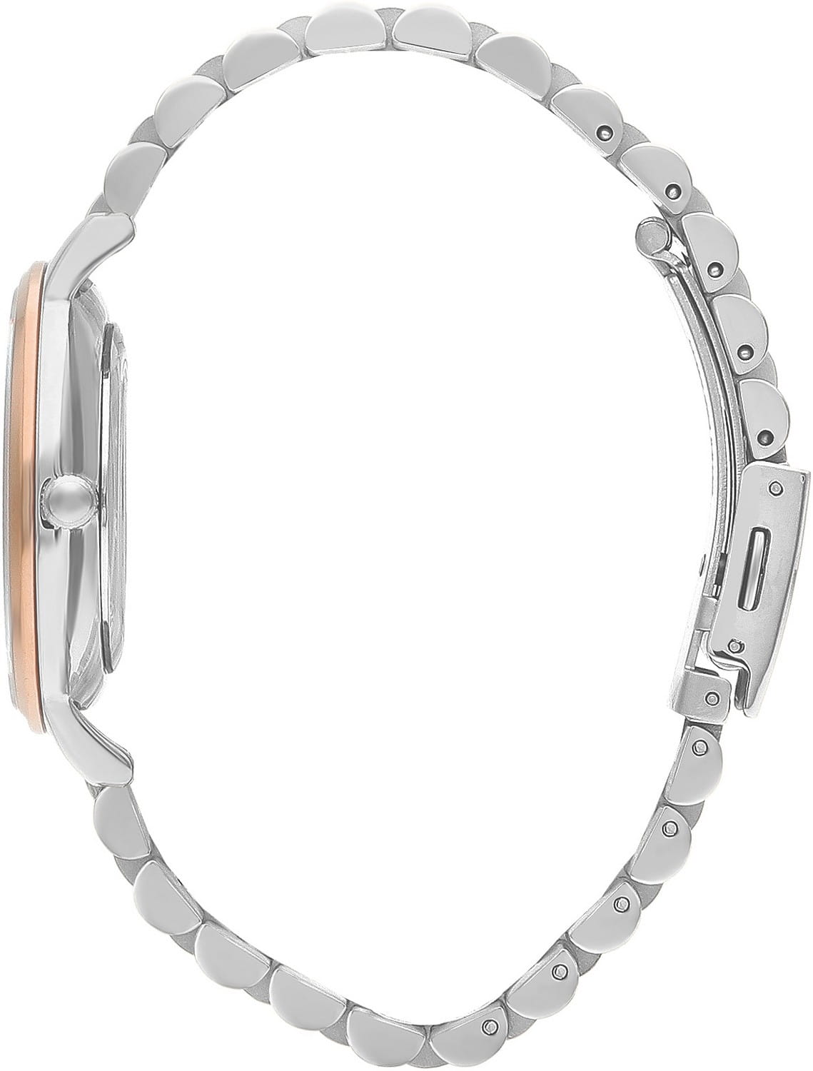 Женские часы Lee Cooper LC07548.520 — это стильное сочетание элегантности и современного дизайна. Круглый корпус диаметром 36 мм выполнен из суперметалла серебристого цвета. Неподвижный безельБезельВнешний ободок, закрепляющий стекло. В спортивных часах так называется поворотное кольцо с делениями на циферблате, выполняет роль таймера – замеряет отрезки времени на шкале. Неподвижный безель – элемент декора. Однонаправленно вращающийся безель на дайверских часах позволяет фиксировать моменты погружения и выныривания на поверхность. с IP-покрытиемIP-покрытиеМетод ионного напыления. Демонстрирует повышенную устойчивость к истиранию, окислению и химическим веществам. Под воздействием высокого давления и температуры около 1500°C молекулы металла надёжно соединяются с частицами корпуса часов. цвета розового золота, что придает модели особый блеск. Серебристый циферблат защищен минеральным стекломМинеральное стеклоМинеральное стекло представляет собой искусственно выращенный минерал кварца. Такое стекло отличается особой устойчивостью к повреждениям и царапинам. Уступает по некоторым качествам сапфировому стеклу., обеспечивающим устойчивость к царапинам и украшен цирконами в виде меток. Часы оснащены надежным кварцевым механизмом, а металлический браслет с частичным IP-покрытиемIP-покрытиеМетод ионного напыления. Демонстрирует повышенную устойчивость к истиранию, окислению и химическим веществам. Под воздействием высокого давления и температуры около 1500°C молекулы металла надёжно соединяются с частицами корпуса часов. на раскладной застёжкеРаскладная застёжкаТакой тип застёжки используется только на браслетах из металла. Она никогда не раскрывается полностью, происходит разделение на 2 и более частей. Раскладывающая застёжка снизит вероятность потери часов к минимуму. гарантирует комфортную посадку на запястье. Водозащита 30 метров защищает модель от случайных брызг и дождя. Lee Cooper — отличный выбор для тех, кто ценит утонченность и качество.