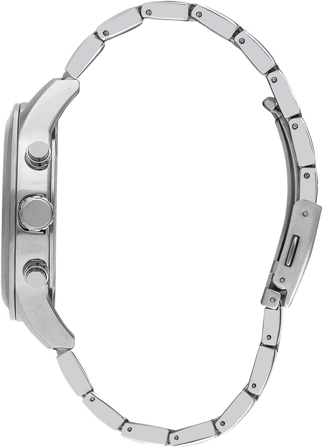 Мужские часы Lee Cooper LC07562.390 — это стильное сочетание элегантности и современного дизайна. Круглый корпус диаметром 46 мм выполнен из суперметалла серебристого цвета, что придает модели особый вид. Циферблат защищен минеральным стекломМинеральное стеклоМинеральное стекло представляет собой искусственно выращенный минерал кварца. Такое стекло отличается особой устойчивостью к повреждениям и царапинам. Уступает по некоторым качествам сапфировому стеклу., обеспечивающим устойчивость к царапинам. Метки в виде штрихов. Часы оснащены надежным кварцевым механизмом, а стальной браслет на раскладной застёжкеРаскладная застёжкаТакой тип застёжки используется только на браслетах из металла. Она никогда не раскрывается полностью, происходит разделение на 2 и более частей. Раскладывающая застёжка снизит вероятность потери часов к минимуму. гарантирует комфортную посадку на запястье. Мультифункциональная модель с индикацией даты, дня недели, с дополнительным 24-х часовым индикатором. Стрелки с люминесцентным покрытиемЛюминесцентное покрытиеПозволяет считывать показания времени в темноте. Производители наносят на стрелки, часовые индексы, безель или поверхность циферблата светонакопительный состав, дающий холодное свечение. позволяют легко считывать время даже в условиях недостаточного освещения. Водозащита 50 метров позволит защитить корпус от случайных брызг или капель дождя. Lee Cooper — отличный выбор для тех, кто ценит утонченность и качество.
