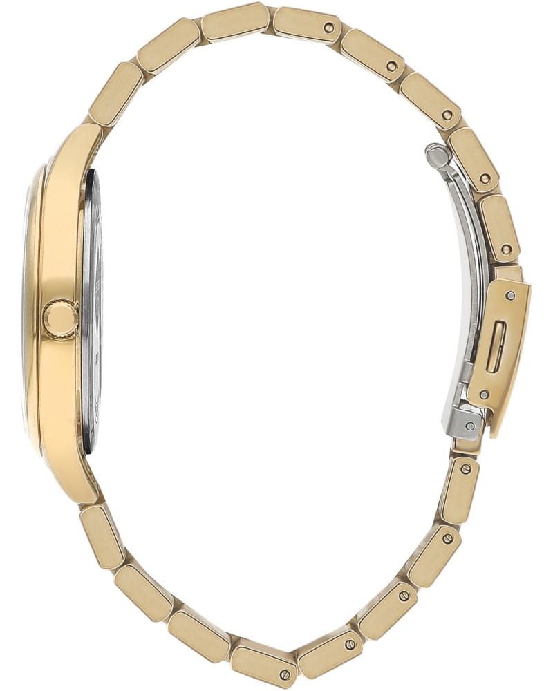 Женские наручные часы Lee Cooper LC07568.110 — это изысканная модель, сочетающая элегантный дизайн и практичность. Корпус диаметром 36 мм выполнен из суперметалла, и золотистый безельБезельВнешний ободок, закрепляющий стекло. В спортивных часах так называется поворотное кольцо с делениями на циферблате, выполняет роль таймера – замеряет отрезки времени на шкале. Неподвижный безель – элемент декора. Однонаправленно вращающийся безель на дайверских часах позволяет фиксировать моменты погружения и выныривания на поверхность. из нержавеющей стали с IP-покрытиемIP-покрытиеМетод ионного напыления. Демонстрирует повышенную устойчивость к истиранию, окислению и химическим веществам. Под воздействием высокого давления и температуры около 1500°C молекулы металла надёжно соединяются с частицами корпуса часов. обеспечивает долговечность и надежность. Модель оснащена надёжным кварцевым механизмом, обеспечивающим точность и долговечность. Минеральное стеклоМинеральное стеклоМинеральное стекло представляет собой искусственно выращенный минерал кварца. Такое стекло отличается особой устойчивостью к повреждениям и царапинам. Уступает по некоторым качествам сапфировому стеклу. защищает циферблат от повреждений и царапин, сохраняя его презентабельный вид. Водонепроницаемость 30 метров защищает часы от случайных брызг, что делает их подходящими для повседневных ситуаций, таких как мытьё рук или прогулки под лёгким дождём. Раскладная застёжкаРаскладная застёжкаТакой тип застёжки используется только на браслетах из металла. Она никогда не раскрывается полностью, происходит разделение на 2 и более частей. Раскладывающая застёжка снизит вероятность потери часов к минимуму. обеспечивает удобную посадку и надёжность при ношении. В целом, эти часы являются отличным выбором для тех, кто ищет аксессуар, объединяющий классический стиль, уникальное цветовое решение и функциональность. Их гармоничное сочетание серебристых и золотистых оттенков с элегантным зелёным циферблатом и качественным механизмом делает их идеальным дополнением к любому гардеробу — от официального до повседневного.