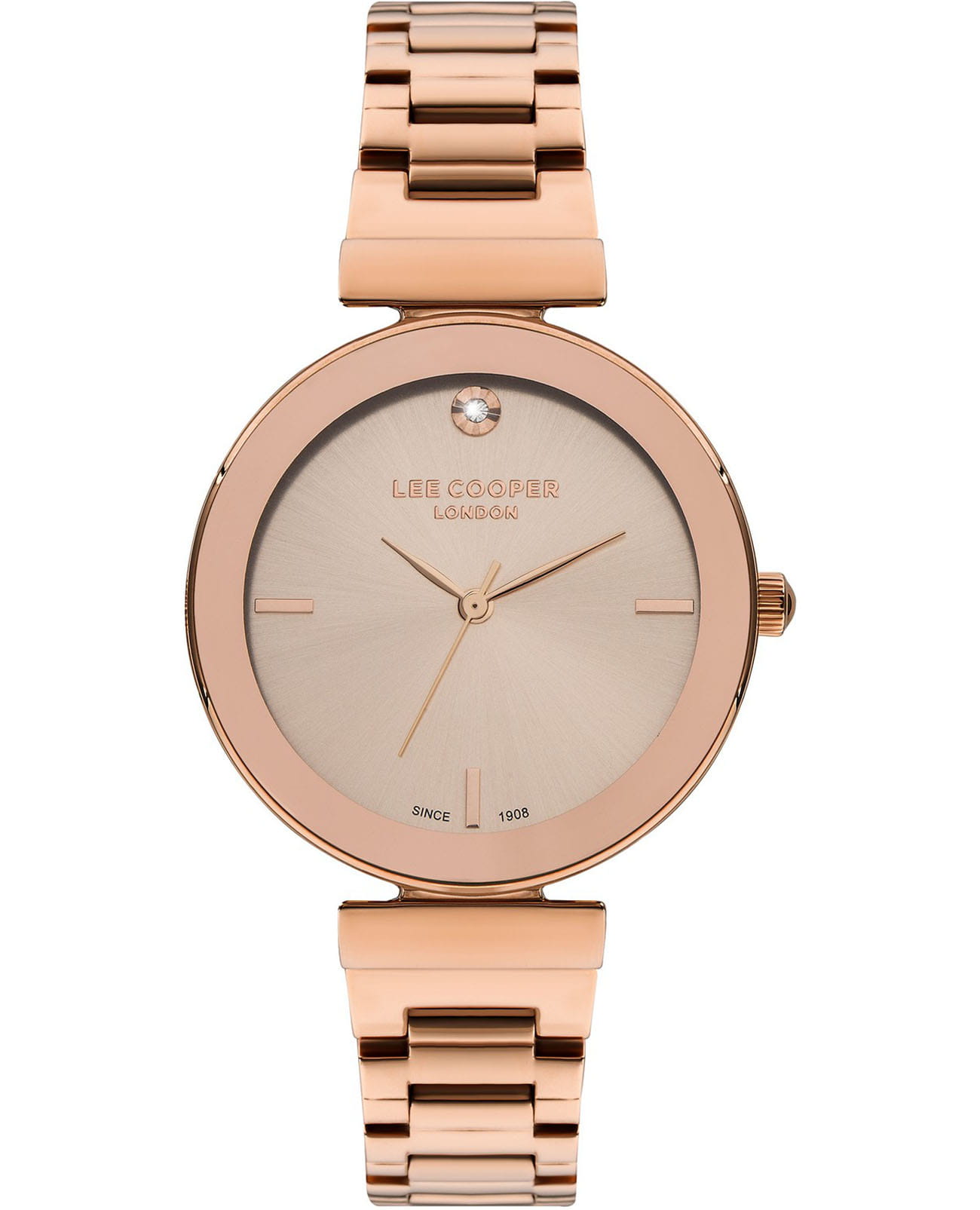 Женские часы Lee Cooper LC07711.410 — это стильное сочетание элегантности и современного дизайна. Круглый корпус диаметром 35 мм выполнен из суперметалла с IP-покрытиемIP-покрытиеМетод ионного напыления. Демонстрирует повышенную устойчивость к истиранию, окислению и химическим веществам. Под воздействием высокого давления и температуры около 1500°C молекулы металла надёжно соединяются с частицами корпуса часов. золотого цвета, придающий модели особый блеск. Изысканный циферблат защищен минеральным стекломМинеральное стеклоМинеральное стекло представляет собой искусственно выращенный минерал кварца. Такое стекло отличается особой устойчивостью к повреждениям и царапинам. Уступает по некоторым качествам сапфировому стеклу., обеспечивающим устойчивость к царапинам. Метки в виде штрихов. Часы оснащены надежным кварцевым механизмом, а стальной браслет с IP-покрытиемIP-покрытиеМетод ионного напыления. Демонстрирует повышенную устойчивость к истиранию, окислению и химическим веществам. Под воздействием высокого давления и температуры около 1500°C молекулы металла надёжно соединяются с частицами корпуса часов. на раскладной застёжкеРаскладная застёжкаТакой тип застёжки используется только на браслетах из металла. Она никогда не раскрывается полностью, происходит разделение на 2 и более частей. Раскладывающая застёжка снизит вероятность потери часов к минимуму. гарантирует комфортную посадку на запястье. Водозащита 30 метров защищает модель от случайных брызг и дождя. Lee Cooper  — отличный выбор для тех, кто ценит утонченность и качество.