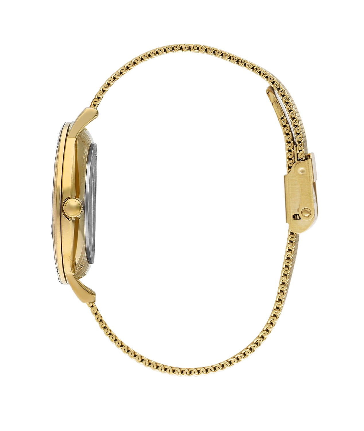 Женские часы Lee Cooper LC07875.120 — это стильное сочетание элегантности и современного дизайна. Изящный корпус выполнен из суперметалла с IP-покрытиемIP-покрытиеМетод ионного напыления. Демонстрирует повышенную устойчивость к истиранию, окислению и химическим веществам. Под воздействием высокого давления и температуры около 1500°C молекулы металла надёжно соединяются с частицами корпуса часов. золотого цвета. Изысканный циферблат инкрустирован цирконами, что придает модели особый блеск и защищен минеральным стекломМинеральное стеклоМинеральное стекло представляет собой искусственно выращенный минерал кварца. Такое стекло отличается особой устойчивостью к повреждениям и царапинам. Уступает по некоторым качествам сапфировому стеклу., обеспечивающим устойчивость к царапинам. Центральные часовая, минутная стрелки. Часы оснащены надежным кварцевым механизмом. Стальной браслет с IP-покрытиемIP-покрытиеМетод ионного напыления. Демонстрирует повышенную устойчивость к истиранию, окислению и химическим веществам. Под воздействием высокого давления и температуры около 1500°C молекулы металла надёжно соединяются с частицами корпуса часов. с застежкой, выполненной в виде раскладного замкаРаскладной замокДанный вариант застежки используется только на часах с металлическим браслетом. Отличительная особенность такого крепления в том, что длина браслета становится универсальной и вы можете самостоятельно отрегулировать нужный вам размер – застежка просто двигается по браслету часов., гарантирующего комфортное и безопасное ношение. Водозащита 30 метров защищает модель от случайных брызг и дождя. Lee Cooper  — отличный выбор для тех, кто ценит утонченность и качество.