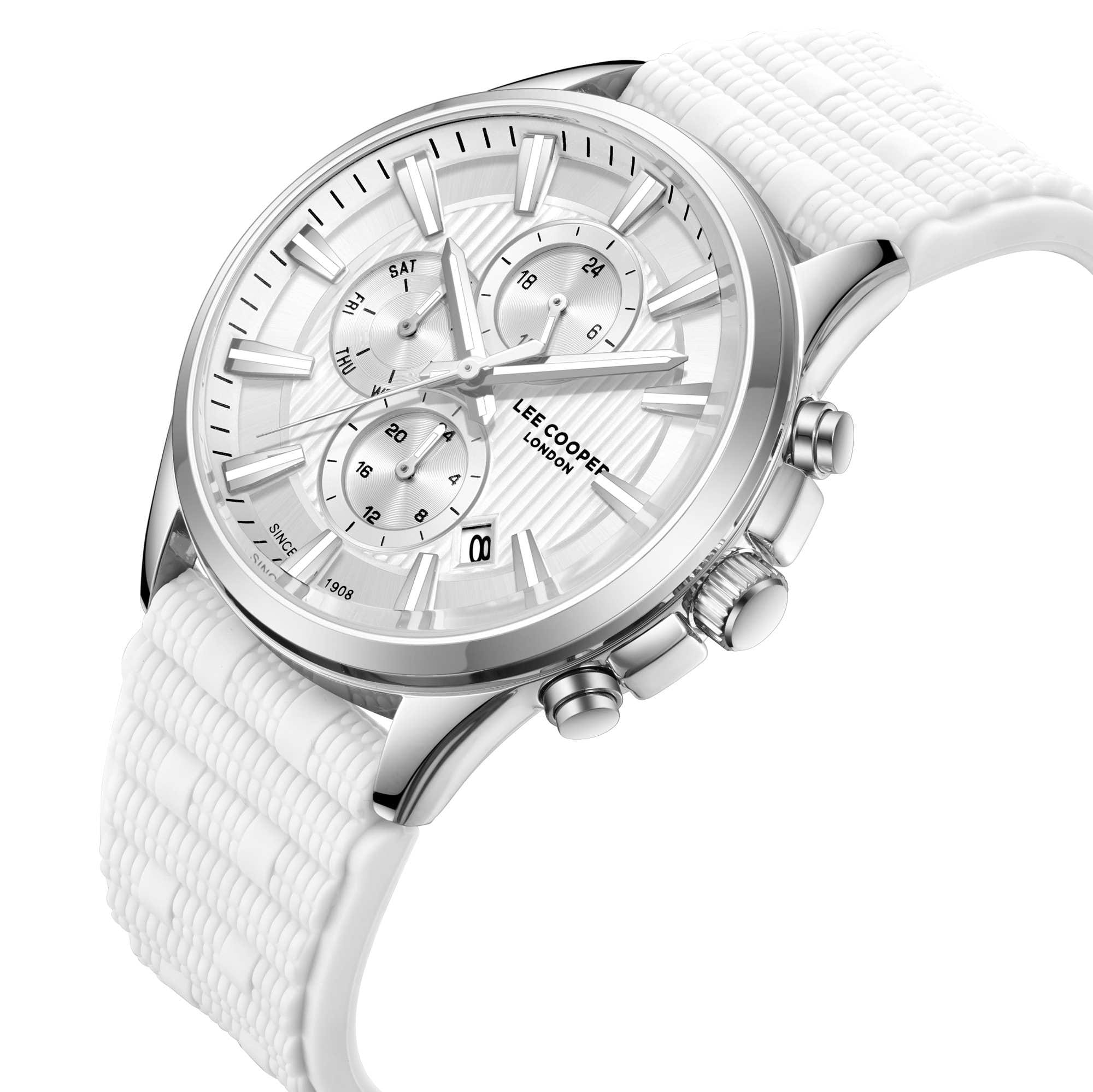 Мужские наручные часы Lee Cooper LC08183.366 оснащены кварцевым механизмом, обеспечивающий высокую точность хода и надежность. Элегантный корпус часов выполнен из суперметалла серебристого цвета, что делает их устойчивыми к внешним воздействиям и придает благородный вид. Циферблат украшен классическими стрелками и метками с люминесцентным покрытиемЛюминесцентное покрытиеПозволяет считывать показания времени в темноте. Производители наносят на стрелки, часовые индексы, безель или поверхность циферблата светонакопительный состав, дающий холодное свечение., гармонично дополняющим общий дизайн модели. Для защиты циферблата используется минеральное стеклоМинеральное стеклоМинеральное стекло представляет собой искусственно выращенный минерал кварца. Такое стекло отличается особой устойчивостью к повреждениям и царапинам. Уступает по некоторым качествам сапфировому стеклу., устойчивое к царапинам и механическим повреждениям. Корпус диаметром 43 мм, что делает часы заметными и подходящими для любого образа. Каучуковый ремешок на стандартной застёжке обеспечивает комфортное и безопасное ношение. Окошко даты находится в положении между 4 и 5 часов. Часы обладают водонепроницаемостью до 30 метров (3 АТМ), что позволяет использовать их в повседневной жизни, включая контакт с водой при мытье рук или дожде. Эти часы станут идеальным выбором для мужчин, ценящих стиль, качество и функциональность.