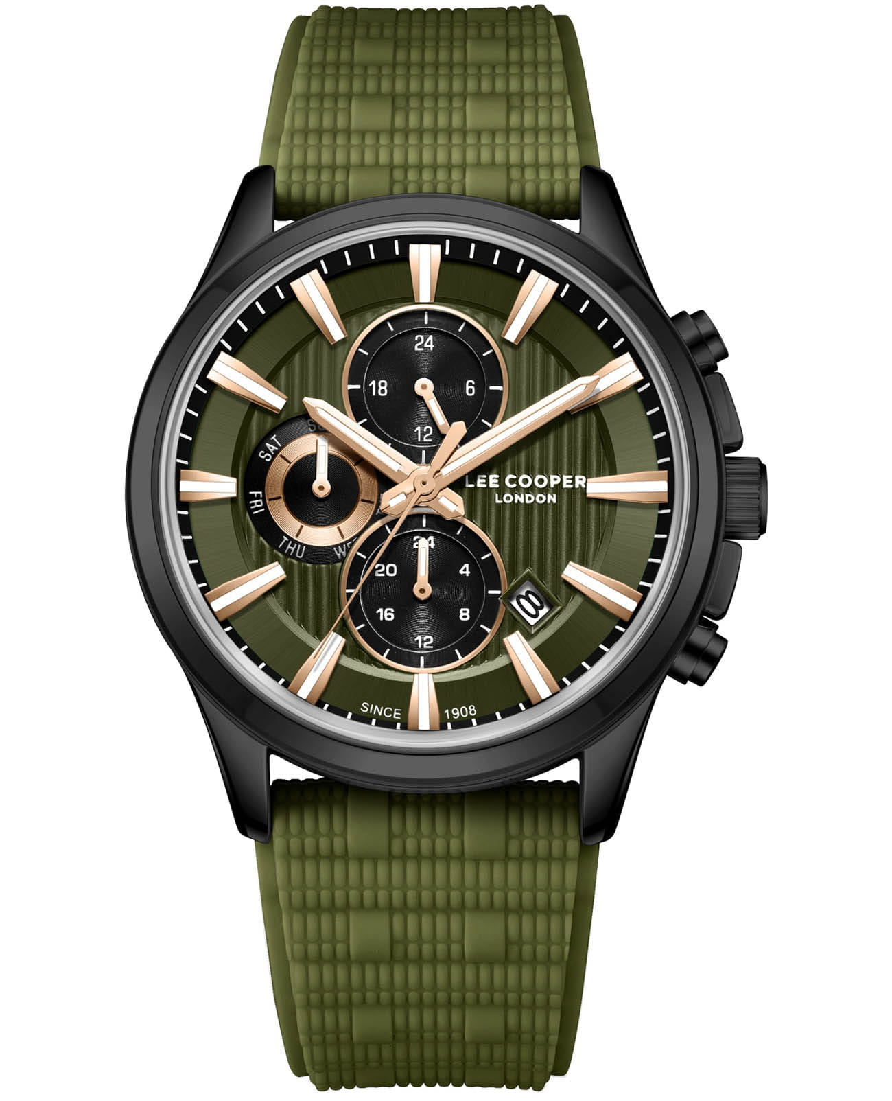Мужские наручные часы Lee Cooper LC08183.675 оснащены кварцевым механизмом, обеспечивающий высокую точность хода и надежность. Элегантный корпус часов выполнен из суперметалла с IP-покрытиемIP-покрытиеМетод ионного напыления. Демонстрирует повышенную устойчивость к истиранию, окислению и химическим веществам. Под воздействием высокого давления и температуры около 1500°C молекулы металла надёжно соединяются с частицами корпуса часов. черного цвета, что делает их устойчивыми к внешним воздействиям и придает благородный вид. Циферблат украшен классическими стрелками и метками с люминесцентным покрытиемЛюминесцентное покрытиеПозволяет считывать показания времени в темноте. Производители наносят на стрелки, часовые индексы, безель или поверхность циферблата светонакопительный состав, дающий холодное свечение., гармонично дополняющим общий дизайн модели. Для защиты циферблата используется минеральное стеклоМинеральное стеклоМинеральное стекло представляет собой искусственно выращенный минерал кварца. Такое стекло отличается особой устойчивостью к повреждениям и царапинам. Уступает по некоторым качествам сапфировому стеклу., устойчивое к царапинам и механическим повреждениям. Корпус диаметром 43 мм, что делает часы заметными и подходящими для любого образа. Каучуковый ремешок на стандартной застёжке обеспечивает комфортное и безопасное ношение. Окошко даты находится в положении между 4 и 5 часов. Часы обладают водонепроницаемостью до 30 метров (3 АТМ), что позволяет использовать их в повседневной жизни, включая контакт с водой при мытье рук или дожде. Эти часы станут идеальным выбором для мужчин, ценящих стиль, качество и функциональность.
