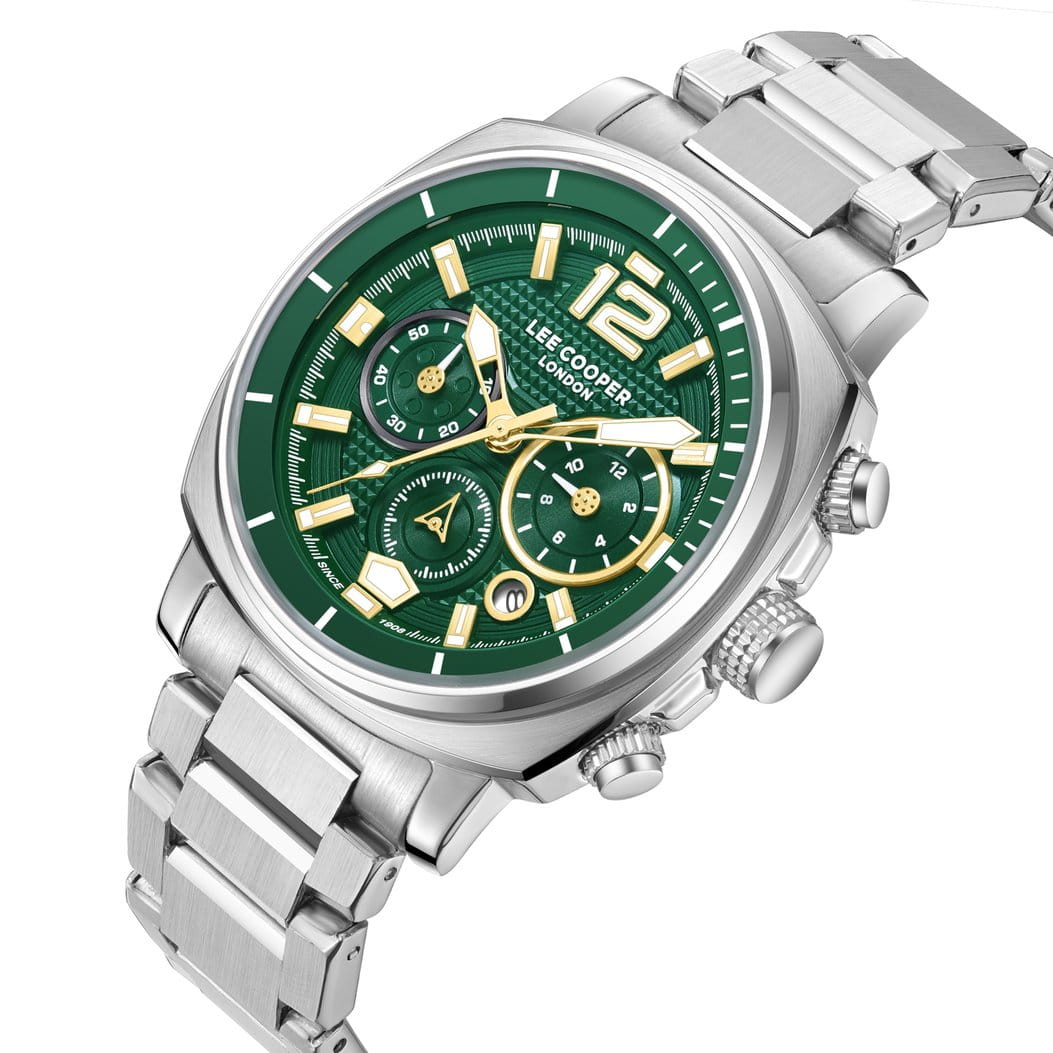 Мужские наручные часы Lee Cooper LC08194.370 оснащены кварцевым механизмом, обеспечивающий высокую точность хода и надежность. Элегантный корпус часов выполнен из суперметалла серебристого цвета, что делает их устойчивыми к внешним воздействиям и придает благородный вид. Циферблат украшен стрелками и метками с люминесцентным покрытиемЛюминесцентное покрытиеПозволяет считывать показания времени в темноте. Производители наносят на стрелки, часовые индексы, безель или поверхность циферблата светонакопительный состав, дающий холодное свечение., гармонично дополняющим общий дизайн модели. Для защиты циферблата используется минеральное стеклоМинеральное стеклоМинеральное стекло представляет собой искусственно выращенный минерал кварца. Такое стекло отличается особой устойчивостью к повреждениям и царапинам. Уступает по некоторым качествам сапфировому стеклу., устойчивое к царапинам и механическим повреждениям. Корпус диаметром 43 мм, что делает часы заметными и подходящими для любого образа. Браслет из стали оснащен раскладной застёжкойРаскладная застёжкаТакой тип застёжки используется только на браслетах из металла. Она никогда не раскрывается полностью, происходит разделение на 2 и более частей. Раскладывающая застёжка снизит вероятность потери часов к минимуму., обеспечивающим комфортное и безопасное ношение. Окошко даты находится в положении между 4 и 5 часов. Часы обладают водонепроницаемостью до 50 метров (5 АТМ), что позволяет использовать их в повседневной жизни, включая контакт с водой при мытье рук или дожде. Эти часы станут идеальным выбором для мужчин, ценящих стиль, качество и функциональность.
