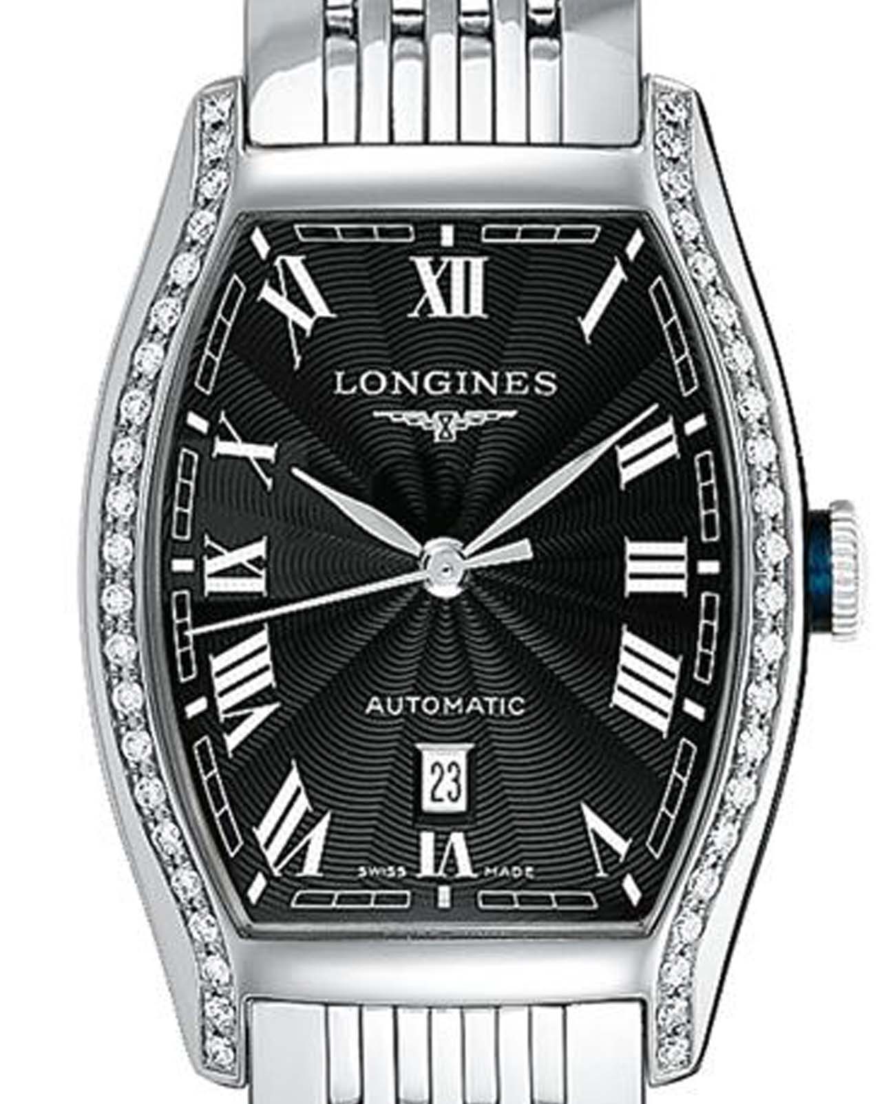 Женские швейцарские механические часы с автоподзаводом Longines Evidenza L2.142.0.50.6. Сапфировое стеклоСапфировое стеклоПрочный и надёжный материал из кристалла сапфира синтетического происхождения, характеризующийся особой твёрдостью и устойчивостью к царапинам и повреждениям. устойчивое к появлению царапин, обладающее высокой прозрачностью. Корпус часов из нержавеющей стали украшен бриллиантами 0,37 карат. Нарисованные римские цифры. Окошко даты в положении 6 часов. Класс водозащиты: 30 метров, позволит защитить корпус от случайных брызг или капель дождя. Стальной браслет на застёжке «бабочка» с кнопкамиЗастёжка "бабочка"Такой вид застёжки дополняется предохранителями, помогающими избежать случайного раскрытия браслета. Обладают изящным исполнением. .