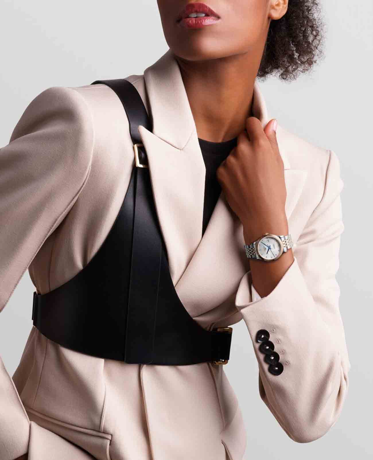 Класс водозащиты 30 метров позволяет носить эти часы в любых условиях, защищая их от случайных брызг и капель дождя. Стальной браслет с частичным покрытием из 18-каратного золота18-каратное золотоОбозначение по каратной системе пробирования, оно показывает, сколько драгоценного металла содержится в изделии. 18 карат - в составе 75% чистого золота, соответствует 750 пробе.