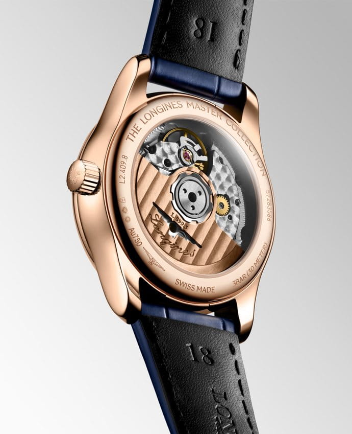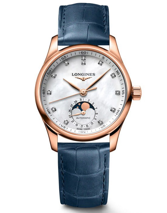 Longines Master Collection Moonphase L2.409.8.87.2 — изысканные женские часы с усложнённым механизмом и элегантным обликом. Корпус диаметром 34 мм выполнен из 18-каратного розового золота, что придаёт модели благородное тепло и утончённость. Аккуратные ушки и плавные линии делают посадку особенно комфортной.