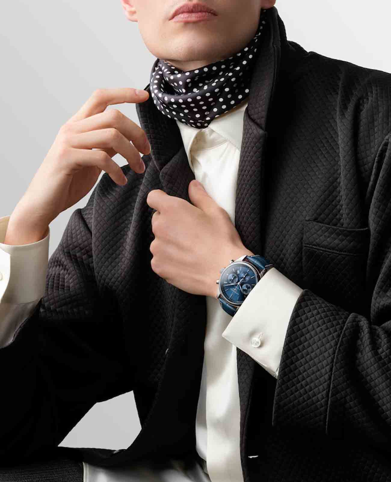 На циферблате расположены три стрелки: часовая, минутная и малая секундная стрелка, которая находится в положении 9 часов. Такой дизайн циферблата придает часам классический и элегантный вид, подчеркивая их принадлежность к премиальному сегменту.
