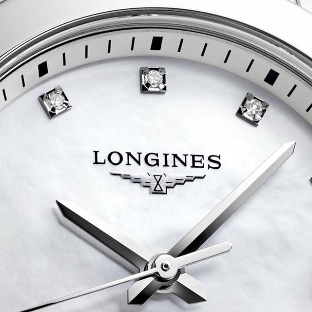 Минималистичный перламутровый циферблат декорирован драгоценными камнями, использовано 11 бриллиантов весом в 0,036 карата. Швейцарский кварцевый калибр L296 измеряет время с высокой точностью. Стекло из сапфира имеет многослойное антибликовое покрытиеАнтибликовое покрытиеСлой оксида металла в 0,13-0,3 микрон, благодаря которому стекло часов не бликует и не отражает свет. Антибликовое покрытие уменьшает отражение света в 10 раз, обеспечивая отличную читаемость показателей циферблата.. Корпус и браслет выполнены из нержавеющей стали 316L. Функции: отображение даты, индикатор EOLEOLПредставляет собой систему, уведомляющую владельца часов о необходимости замены элемента питания. За 2 недели до полного разряда батарейки секундная стрелка перестаёт ходить чётко и начинает перепрыгивать на 3-4 деления., индикация фаз луны.
