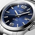 ​​Часы Longines Conquest L3.777.4.99.6 сочетают элегантный дизайн и высокую функциональность. Корпус диаметром 41 мм выполнен из нержавеющей стали, а синий циферблат защищён Сапфировым стекломСапфировое стеклоПрочный и надёжный материал из кристалла сапфира синтетического происхождения, характеризующийся особой твёрдостью и устойчивостью к царапинам и повреждениям. с антибликовым покрытиемАнтибликовое покрытиеСлой оксида металла в 0,13-0,3 микрон, благодаря которому стекло часов не бликует и не отражает свет. Антибликовое покрытие уменьшает отражение света в 10 раз, обеспечивая отличную читаемость показателей циферблата., обеспечивающим отличную читаемость при любом освещении. ​​