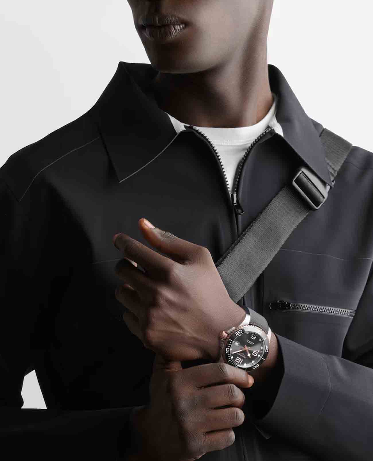 Мужские швейцарские механические часы для дайвинга Longines Hydroconquest L3.782.3.78.9. Сапфировое стеклоСапфировое стеклоПрочный и надёжный материал из кристалла сапфира синтетического происхождения, характеризующийся особой твёрдостью и устойчивостью к царапинам и повреждениям. с многослойным антибликовым покрытием с обеих сторон, устойчивое к появлению царапин, обладающее высокой прозрачностью. Корпус часов изготовлен из стали. Вращающийся безельБезельВнешний ободок, закрепляющий стекло. В спортивных часах так называется поворотное кольцо с делениями на циферблате, выполняет роль таймера – замеряет отрезки времени на шкале. Неподвижный безель – элемент декора. Однонаправленно вращающийся безель на дайверских часах позволяет фиксировать моменты погружения и выныривания на поверхность. из стали с PVD-покрытиемPVDУльтратонкое покрытие наносится в технике вакуумного напыления, сочетает в себе нитрид титана особой прочности со слоем золота или оксида хрома. Несёт в себе декоративную или защитную функцию. и керамики, защищенный от царапин, никогда не изнашивается и не выцветает. Стрелки и метки с люминесцентным покрытиемЛюминесцентное покрытиеПозволяет считывать показания времени в темноте. Производители наносят на стрелки, часовые индексы, безель или поверхность циферблата светонакопительный состав, дающий холодное свечение.. Окошко даты находится в положении 3 часов. Класс водозащиты: 300 метров, позволит плавать, нырять и заниматься другими водными видами спорта. Каучковый ремешок на раскладной застёжкеРаскладная застёжкаТакой тип застёжки используется только на браслетах из металла. Она никогда не раскрывается полностью, происходит разделение на 2 и более частей. Раскладывающая застёжка снизит вероятность потери часов к минимуму..