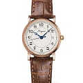 Время указывают винтажные стрелки «Breguet». Ювелирный корпус выполнен из 18-ти каратного розового золота18-каратное золотоОбозначение по каратной системе пробирования, оно показывает, сколько драгоценного металла содержится в изделии. 18 карат - в составе 75% чистого золота, соответствует 750 пробе.