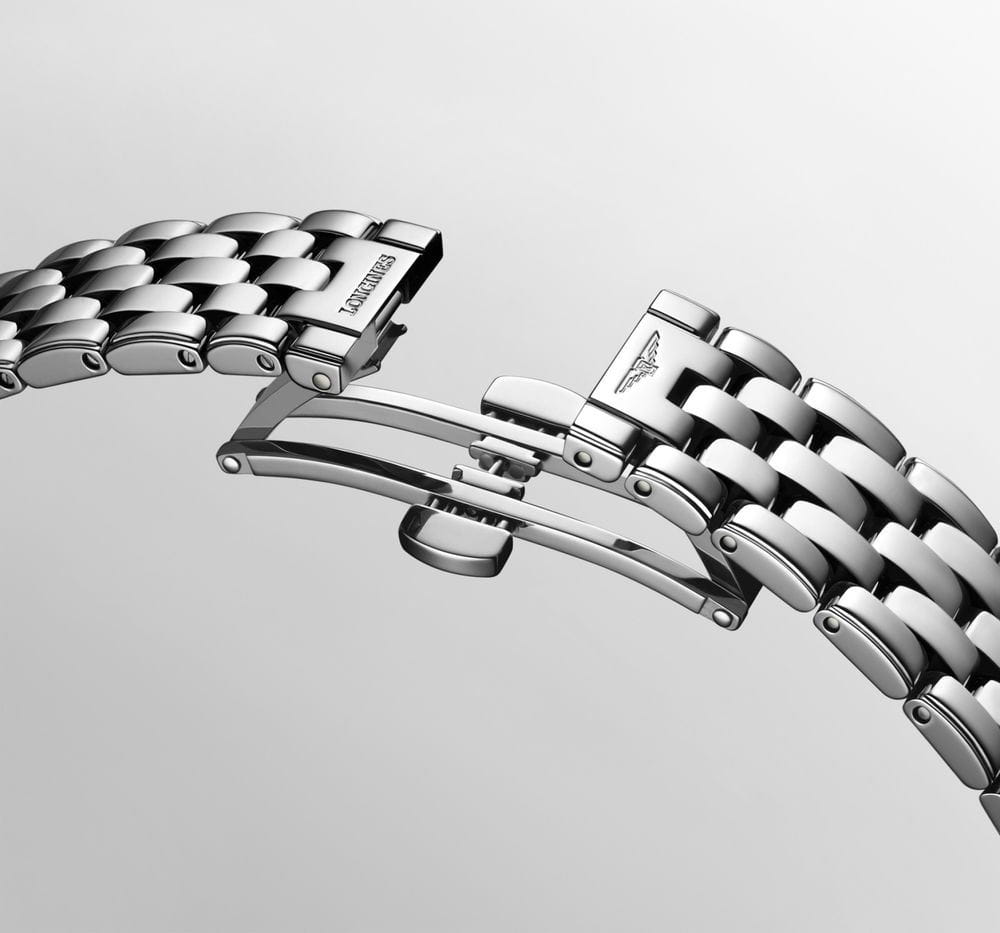 Стальной браслет на застёжке-бабочке с кнопкамиЗастёжка "бабочка"Такой вид застёжки дополняется предохранителями, помогающими избежать случайного раскрытия браслета. Обладают изящным исполнением. подчеркивает стиль и изысканность модели, делая ее идеальным выбором для тех, кто ценит качество и элегантность. Longines Flagship — это не просто часы, а настоящее произведение часового искусства, способное подчеркнуть вашу индивидуальность и статус.