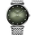Женские швейцарские часы Longines La Grande Classique L4.866.4.92.6, кварцевый механизм с высокой точностью. Сапфировое стеклоСапфировое стеклоПрочный и надёжный материал из кристалла сапфира синтетического происхождения, характеризующийся особой твёрдостью и устойчивостью к царапинам и повреждениям. устойчивое к появлению царапин, обладающее высокой прозрачностью. Корпус часов изготовлен из стали. Циферблат с 12 бриллиантами группы Top Wesselton VS-SI общим весом 0.081 карата. Класс водозащиты: 30 метров, позволит защитить корпус от случайных брызг или капель дождя. Стальной браслет на застёжке-бабочке с кнопкамиЗастёжка "бабочка"Такой вид застёжки дополняется предохранителями, помогающими избежать случайного раскрытия браслета. Обладают изящным исполнением. .