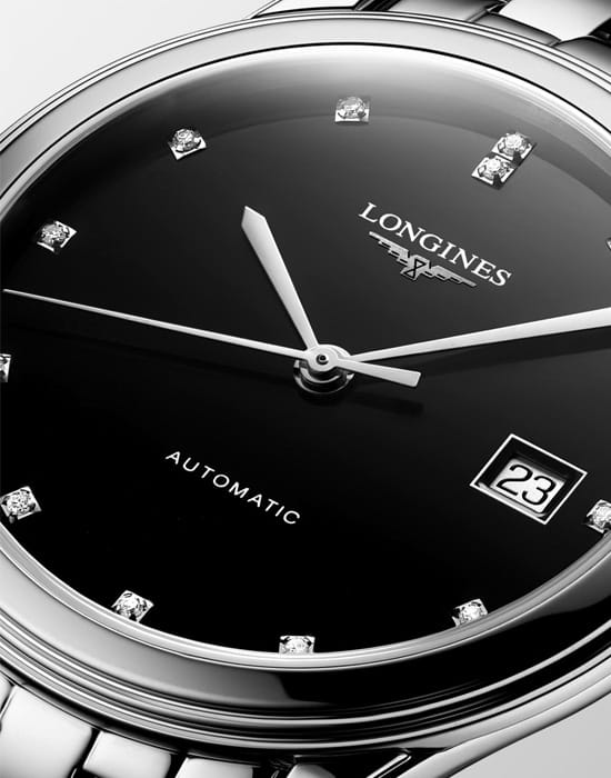 Мужские швейцарские часы Longines Flagship L4.874.4.57.2 очаровывают своим роскошным сиянием. Прозрачная задняя крышка с сапфировым стеклом. Ремешок с застежкой-пряжкой. Черный лаковый полированный циферблат, метки: 13 бриллиантов группы Wesselton VS общим весом 0,059 карат, посеребренные полированные стрелки. Корпус из нержавеющей стали 316L надёжно защищает швейцарский кварцевый механизм. Сапфировое стекло, устойчивое к царапинам, дополнено многослойным антибликовым покрытиемАнтибликовое покрытиеСлой оксида металла в 0,13-0,3 микрон, благодаря которому стекло часов не бликует и не отражает свет. Антибликовое покрытие уменьшает отражение света в 10 раз, обеспечивая отличную читаемость показателей циферблата.. Производство и сборка: Швейцария.