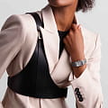 Сапфировое стеклоСапфировое стеклоПрочный и надёжный материал из кристалла сапфира синтетического происхождения, характеризующийся особой твёрдостью и устойчивостью к царапинам и повреждениям., словно прозрачный щит, оберегает циферблат от царапин, сохраняя его первозданную красоту. Корпус часов, изготовленный из благородной нержавеющей стали, украшен 46 бриллиантами группы Top Wesselton IF-VVS общим весом 0.552 карата, придавая им неповторимый блеск и изысканность.
