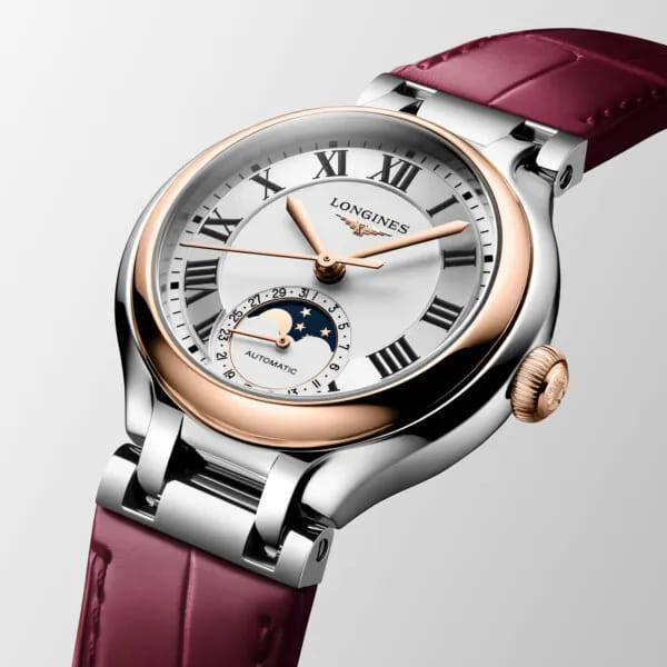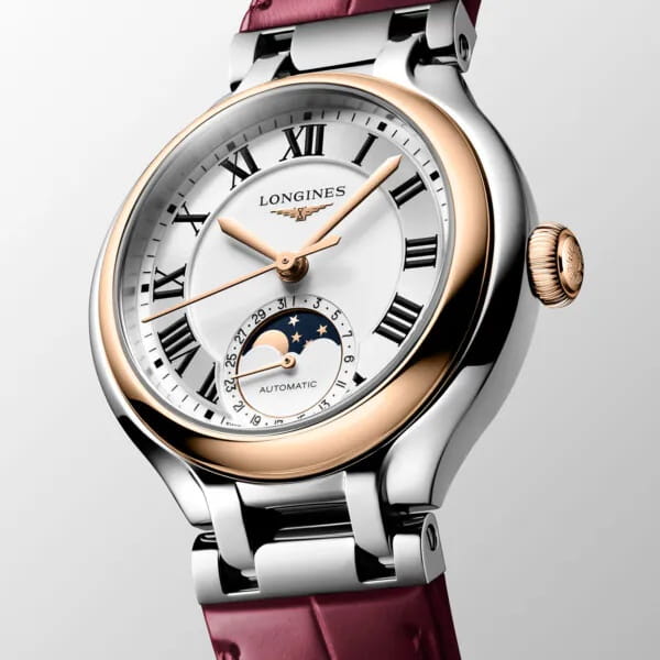 . Класс водонепроницаемости WR30 обеспечит защиту корпуса от случайных брызг или капель дождя, что делает часы удобными для повседневного ношения в различных погодных условиях. Бордовый кожаный ремешок с удобной и надежной застёжкой-бабочкой с кнопкамиЗастёжка "бабочка"Такой вид застёжки дополняется предохранителями, помогающими избежать случайного раскрытия браслета. Обладают изящным исполнением. обеспечивает комфортное и безопасное крепление часов на запястье. Указатель фаз Луны в положении «6 часов». Коллекция Longines PrimaLuna – это воплощение женственности, романтики и утонченного вкуса. Эти часы станут идеальным подарком для себя или любимой женщины, подчеркнув её уникальность и стиль.