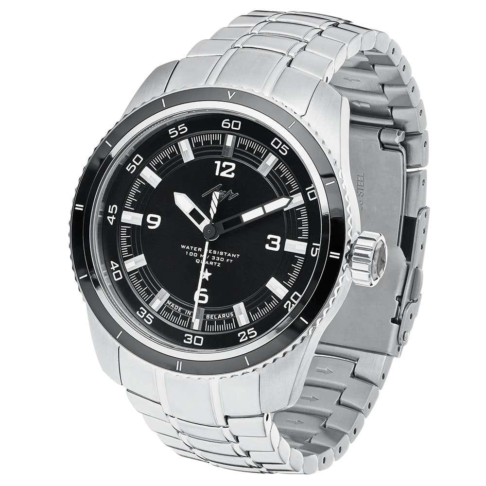 Мужские наручные часы Луч Commander 96760566 — это стильное сочетание элегантности и современного дизайна. Элегантный корпус диаметром 46.8 мм выполнен из нержавеющей стали, который придает модели особый изысканный вид. Циферблат защищен сапфировым стекломСапфировое стеклоПрочный и надёжный материал из кристалла сапфира синтетического происхождения, характеризующийся особой твёрдостью и устойчивостью к царапинам и повреждениям., обеспечивающим устойчивость к царапинам. Метки в виде штрихов. Часы оснащены кварцевым механизмом, а браслет из нержавеющей стали фиксируется на раскладной застёжкеРаскладная застёжкаТакой тип застёжки используется только на браслетах из металла. Она никогда не раскрывается полностью, происходит разделение на 2 и более частей. Раскладывающая застёжка снизит вероятность потери часов к минимуму.. Поворотный безельБезельВнешний ободок, закрепляющий стекло. В спортивных часах так называется поворотное кольцо с делениями на циферблате, выполняет роль таймера – замеряет отрезки времени на шкале. Неподвижный безель – элемент декора. Однонаправленно вращающийся безель на дайверских часах позволяет фиксировать моменты погружения и выныривания на поверхность. с PVD-покрытиемPVDУльтратонкое покрытие наносится в технике вакуумного напыления, сочетает в себе нитрид титана особой прочности со слоем золота или оксида хрома. Несёт в себе декоративную или защитную функцию. черного цвета. Стрелки и метки с люминесцентным покрытиемЛюминесцентное покрытиеПозволяет считывать показания времени в темноте. Производители наносят на стрелки, часовые индексы, безель или поверхность циферблата светонакопительный состав, дающий холодное свечение. позволяют легко считывать время даже в условиях недостаточного освещения. Водозащита 10 бар позволит защитить корпус от случайных брызг или капель дождя. Луч — отличный выбор для тех, кто ценит утонченность и качество.