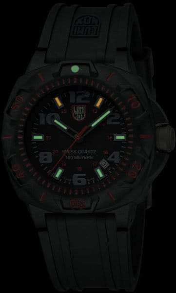 Эффектные швейцарские наручные часы. 12-ти и 24-х часовой формат времени. Безель вращается в одном направлении. Задняя крышка из усиленного карбона закреплена стальными винтами. Заводная головка с защитой выполнена из стали. Материал корпуса: пластик, усиленный прессованный карбон; Материал браслета: полиуретановый; Стекло: Минеральное; Водозащита: 100 м. (WR 100).