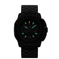 Часы Luminox F-22 Raptor XA.9272 созданы в честь истребителя-невидимки Lockheed Martin и изготовлены из цельного титана с PVD-покрытиемPVDУльтратонкое покрытие наносится в технике вакуумного напыления, сочетает в себе нитрид титана особой прочности со слоем золота или оксида хрома. Несёт в себе декоративную или защитную функцию., который прочнее и значительно легче стали. Эти часы имеют четкие дополнительные циферблаты хронографаХронографФункция позволяет измерять отрезки времени с особой точностью: часы, минуты, секунды. Верным признаком хронографа является наличие на циферблате 3 дополнительных окошек-счётчиков., которые легко считываются в любое время суток благодаря технологии Luminox Light, встроенной в циферблат и стрелки. Титановая завинчивающаяся задняя крышка корпуса украшена тщательно выгравированным изображением самолета F-22 Raptor, подчеркивая мощь и инженерное мастерство Lockheed Martin, вдохновившее создание этих часов. Основной особенностью модели является фирменная технология Luminox Always Visible, обеспечивающая постоянное свечение в течение 25 лет без необходимости в дополнительном освещении. Часы весят 146 грамм и произведены в Швейцарии, что гарантирует их высокое качество и надежность. Механизм Ronda 5050.C включает крупную дату на отметке 6 часов и день недели на 12 часах. Постоянное свечение циферблата сохраняется до 25 лет при любом освещении. БезельБезельВнешний ободок, закрепляющий стекло. В спортивных часах так называется поворотное кольцо с делениями на циферблате, выполняет роль таймера – замеряет отрезки времени на шкале. Неподвижный безель – элемент декора. Однонаправленно вращающийся безель на дайверских часах позволяет фиксировать моменты погружения и выныривания на поверхность. выполнен из титана с алюминиевым кольцом и может вращаться в обоих направлениях. Черный циферблат защищен сапфировым стекломСапфировое стеклоПрочный и надёжный материал из кристалла сапфира синтетического происхождения, характеризующийся особой твёрдостью и устойчивостью к царапинам и повреждениям. с антибликовым покрытиемАнтибликовое покрытиеСлой оксида металла в 0,13-0,3 микрон, благодаря которому стекло часов не бликует и не отражает свет. Антибликовое покрытие уменьшает отражение света в 10 раз, обеспечивая отличную читаемость показателей циферблата., а водонепроницаемость достигает 200 метров. Часы комплектуются браслетом из титана с черным PVD-покрытиемPVDУльтратонкое покрытие наносится в технике вакуумного напыления, сочетает в себе нитрид титана особой прочности со слоем золота или оксида хрома. Несёт в себе декоративную или защитную функцию. и раскладной застёжкойРаскладная застёжкаТакой тип застёжки используется только на браслетах из металла. Она никогда не раскрывается полностью, происходит разделение на 2 и более частей. Раскладывающая застёжка снизит вероятность потери часов к минимуму., ширина которого составляет 24 мм. Этот стильный и надежный аксессуар станет отличным выбором для тех, кто ценит сочетание инновационных технологий и элегантного дизайна.